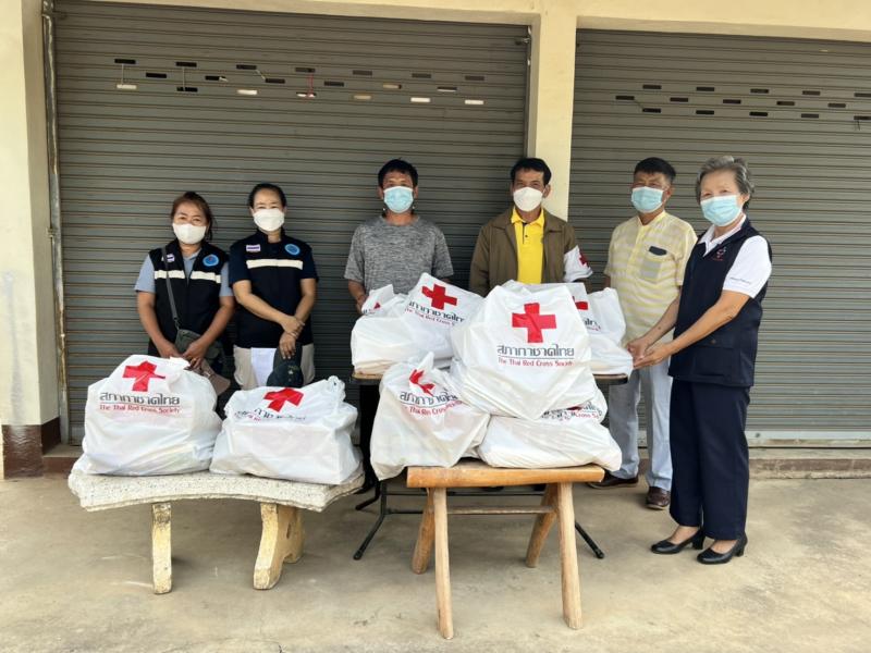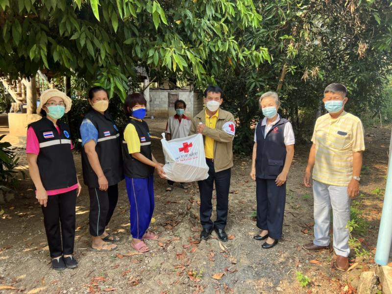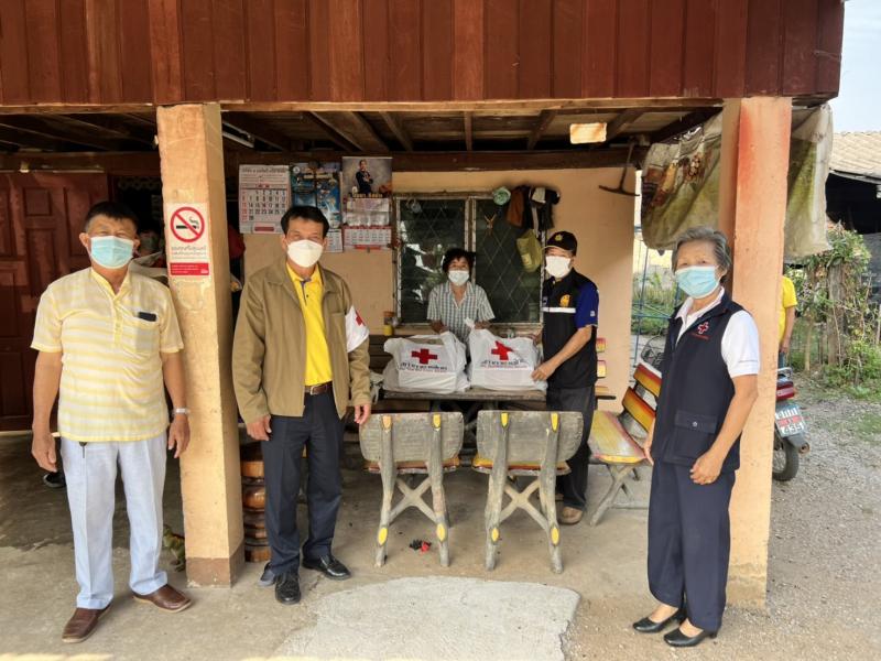 นายกเทศมนตรีตำบลนาครัวพร้อมด้วยตัวแทนกิ่งกาชาด ผู้ใหญ่บ้านและอสม. เป็นตัวแทนมอบถุงยังชีพให้กับผู้สัมผัสเสี่ยงสูง (COVID-19) จากสภากาชาดไทย