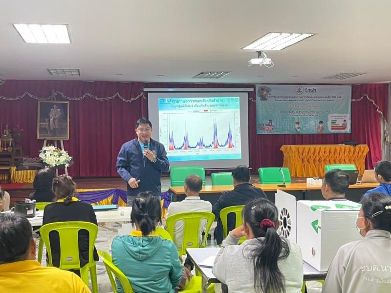 ดร. แสวง กาวิจัย นักวิจัยประจำสถาบันฯ พร้อมด้วยคุณอุวรรณา รัตนศรี คุณภาสกร กุณภา และคุณฐณะวัฒน์ โกมลนิธิพงศ์ ร่วมเป็นวิทยากรการป้องกันตนเองจากฝุ่น PM2.5 และการสร้างห้องอากาศดี พร้อมทั้งสาธิตการทำกล่องอากาศดีที่เป็นเครื่องฟอกอากาศ ให้กับผู้นำชุมชนในพื้นที่เทศบาลตำบลนาครัว อำเภอแม่ทะ จังหวัดลำปาง ซึ่งกิจกรรมครั้งนี้เป็นโครงการป้องกันและดูแลภัยฝุ่นละอองขนาดเล็ก PM2.5 ในเขตเทศบาลตำบลนาครัว ประจำปีงบประมาณ 2568