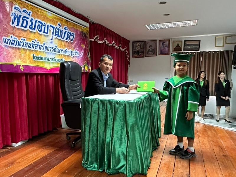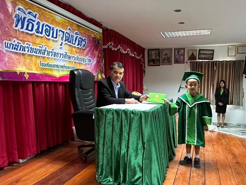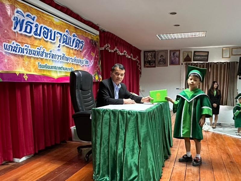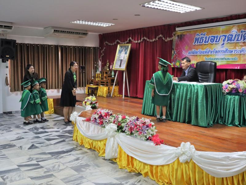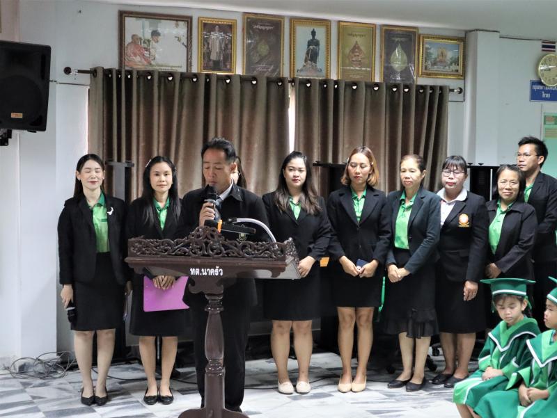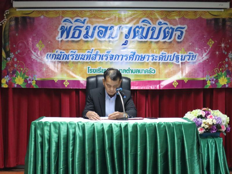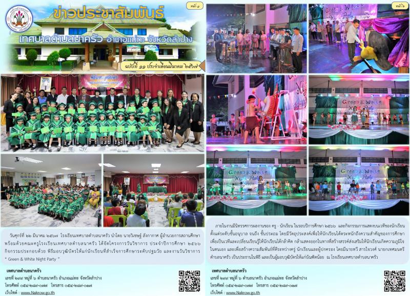 รายละเอียด : วันศุกร์ที่ 22 มีนาคม 2567 โรงเรียนเทศบาลตำบลนาครัว นำโดย นายวิเชษฐ์ ลังกากาศ ผู้อำนวยการสถานศึกษา พร้อมด้วยคณะครูโรงเรียนเทศบาลตำบลนาครัว ได้จัดโครงการวันวิชาการ ประจำปีการศึกษา 2566 กิจกรรมประกอบด้วย พิธีมอบวุฒิบัตรให้แก่นักเรียนที่สำเร็จการศึกษาระดับปฐมวัย และงานวันวิชาการ “ Green & White Night Party ” ภายในงานมีนิทรรศการผลงานของ ครู - นักเรียน ในรอบปีการศึกษา 2566 และกิจกรรมการแสดงบนเวทีของนักเรียน ตั้งแต่ระดับชั้นอนุบาล จนถึง ชั้นประถม โดยมีวัตถุประสงค์เพื่อให้นักเรียนได้ตระหนักถึงความสำคัญของการศึกษา เพื่อเป็นเวทีและเปลี่ยนเรียนรู้ให้นักเรียนได้กล้าคิด กล้าแสดงออกในทางที่สร้างสรรค์ส่งเสริมให้นักเรียนเกิดความภูมิใจในตนเอง และเพื่อสร้างความสัมพันธ์ที่ดีระหว่างครู นักเรียนและผู้ปกครอง โดยมีนายทวี สารใจวงศ์ นายกเทศมนตรีตำบลนาครัว เป็นประธานในพิธี และเป็นผู้มอบวุฒิบัตรให้แก่บัณฑิตน้อย ณ โรงเรียนเทศบาลตำบลนาครัว