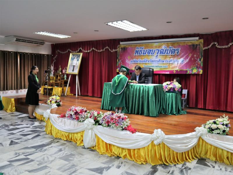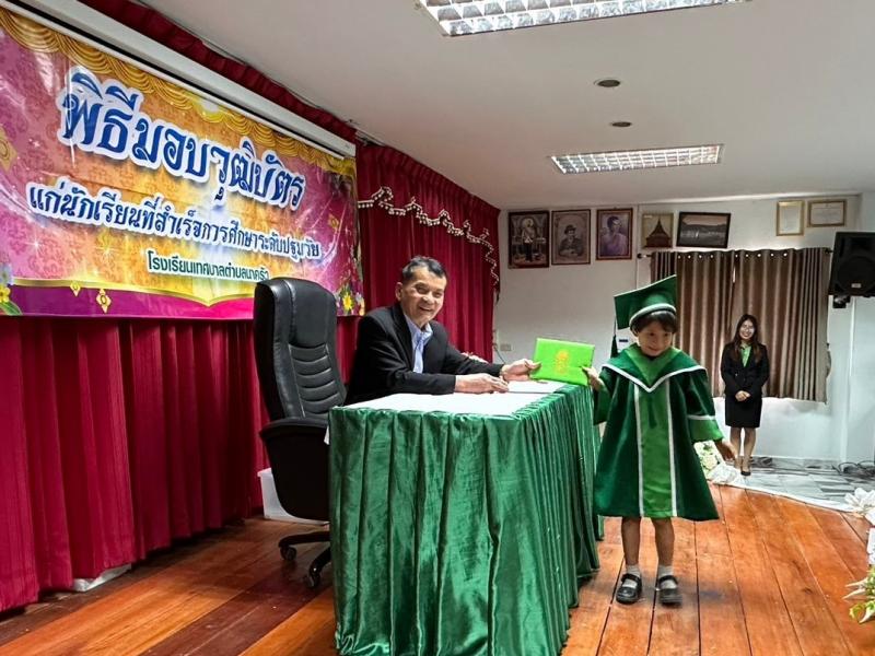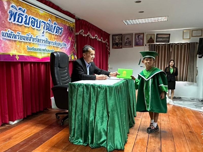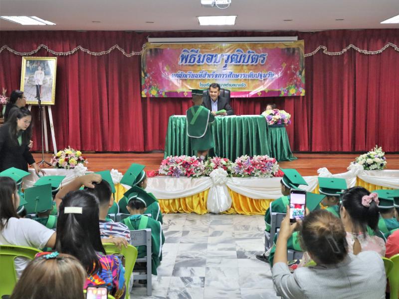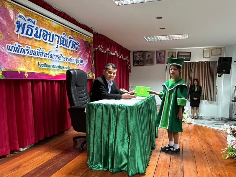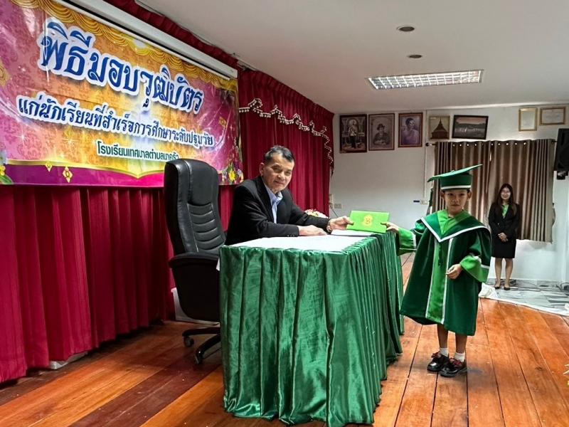รายละเอียด : วันศุกร์ที่ 22 มีนาคม 2567 โรงเรียนเทศบาลตำบลนาครัว นำโดย นายวิเชษฐ์ ลังกากาศ ผู้อำนวยการสถานศึกษา พร้อมด้วยคณะครูโรงเรียนเทศบาลตำบลนาครัว ได้จัดโครงการวันวิชาการ ประจำปีการศึกษา 2566 กิจกรรมประกอบด้วย พิธีมอบวุฒิบัตรให้แก่นักเรียนที่สำเร็จการศึกษาระดับปฐมวัย และงานวันวิชาการ “ Green & White Night Party ” ภายในงานมีนิทรรศการผลงานของ ครู - นักเรียน ในรอบปีการศึกษา 2566 และกิจกรรมการแสดงบนเวทีของนักเรียน ตั้งแต่ระดับชั้นอนุบาล จนถึง ชั้นประถม โดยมีวัตถุประสงค์เพื่อให้นักเรียนได้ตระหนักถึงความสำคัญของการศึกษา เพื่อเป็นเวทีและเปลี่ยนเรียนรู้ให้นักเรียนได้กล้าคิด กล้าแสดงออกในทางที่สร้างสรรค์ส่งเสริมให้นักเรียนเกิดความภูมิใจในตนเอง และเพื่อสร้างความสัมพันธ์ที่ดีระหว่างครู นักเรียนและผู้ปกครอง โดยมีนายทวี สารใจวงศ์ นายกเทศมนตรีตำบลนาครัว เป็นประธานในพิธี และเป็นผู้มอบวุฒิบัตรให้แก่บัณฑิตน้อย ณ โรงเรียนเทศบาลตำบลนาครัว