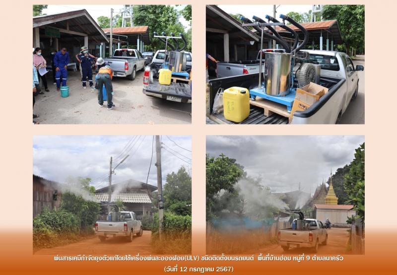 รายละเอียด : วันที่ 12 กรกฎาคม 2567 นายทวี สารใจวงศ์ นายกเทศมนตรีตำบลนาครัว มอบหมายให้ งานสาธารณสุขและสิ่งแวดล้อม งานป้องกันและบรรเทาสาธารณภัย (สำนักปลัด) ดำเนินการพ่นสารเคมีกำจัดยุงตัวแก่เพื่อป้องกันและควบคุมการแพร่ระบาดของโรคชิคุนกุนย่า(Chikungunya) ในพื้นที่บ้านฮ่อม หมู่ที่9 และบ้านน้ำโท้ง หมู่ที่ 1 (บางส่วน) ตำบลนาครัว อำเภอแม่ทะ จังหวัดลำปาง โดยใช้เครื่องพ่นละอองฝอย(ULV) ชนิดติดตั้งบนรถยนต์ ที่ได้รับการสนับสนุนจากเทศบาลเมืองเขลางค์นคร และเครื่องพ่นละอองฝอย(ULV) ชนิดสะพายหลัง จากองค์การบริหารส่วนตำบลบ้านกิ่ว / เนื่องจาก เทศบาลตำบลนาครัว ได้รับแจ้งจาก รพ. สต. บ้านอ้วน ว่าพบผู้ป่วยโรคชิคุนกุนย่า(Chikungunya) จำนวน 1 ราย และผู้ป่วยสงสัยเป็นโรคชิคุนกุนย่า(Chikungunya) จำนวน 22 ราย อาศัยในพื้นที่บ้านฮ่อม หมู่ที่ 9 ในจำนวนนี้มี 2 ราย อาศัยอยู่ในพื้นที่บ้านน้ำโท้ง หมู่ที่ 1 ตำบลนาครัว อำเภอแม่ทะ จังหวัดลำปาง / โดย เมื่อวันที่ 11 กรกฎาคม 2567 สาธารณสุขอำเภอแม่ทะ อสม.บ้านฮ่อม และเจ้าหน้าที่ รพ.สต. บ้านอ้วน ลงพื้นที่สอบสวนโรคชิคุนกุนย่า(Chikungunya) ในพื้นที่บ้านฮ่อม หมู่ที่ 9 ตำบลนาครัว ในการนี้นายทวี สารใจวงศ์ นายกเทศมนตรีตำบลนาครัว มอบหมายให้นางปทุม สารใจวงศ์ รองนายกเทศมนตรีตำบลนาครัว เข้าร่วมลงพื้นที่ในครั้งนี้ด้วย