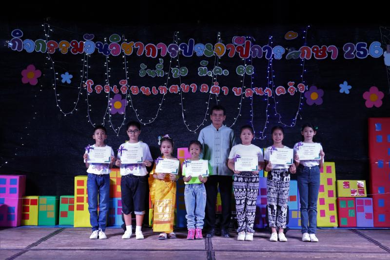 รายละเอียด : วันที่ 29 มีนาคม 2566 โรงเรียนเทศบาลตำบลนาครัวได้จัดกิจกรรมวันวิชาการ ประจำปีการศึกษา 2565 /โดยกิจกรรมภาคเช้า นายทวี สารใจวงศ์ นายกเทศมนตรีตำบลนาครัว กล่าวเปิดพิธีมอบวุฒิบัตรแก่นักเรียนที่สำเร็จการศึกษาระดับปฐมวัย พร้อมมอบวุฒิบัตรให้กับนักเรียนผู้สำเร็จการศึกษา ระดับชั้นอนุบาล 3 ประจำปีการศึกษา 2565 จำนวน 29 คน และให้โอวาทแก่บัณฑิตน้อยผู้สำเร็จการศึกษา /กิจกรรมภาคค่ำ เป็นการแสดงต่างๆของนักเรียนแต่ละระดับชั้น ตั้งแต่ชั้นอนุบาลปีที่ 1 ถึง ระดับชั้นประถึงศึกษาปีที่ 4 พร้อมกับมอบเกียรติบัตรให้แก่นักเรียนดีเด่นในด้านการพัฒนาการดี ด้านมารยาทดี และผลการเรียนดีเด่น