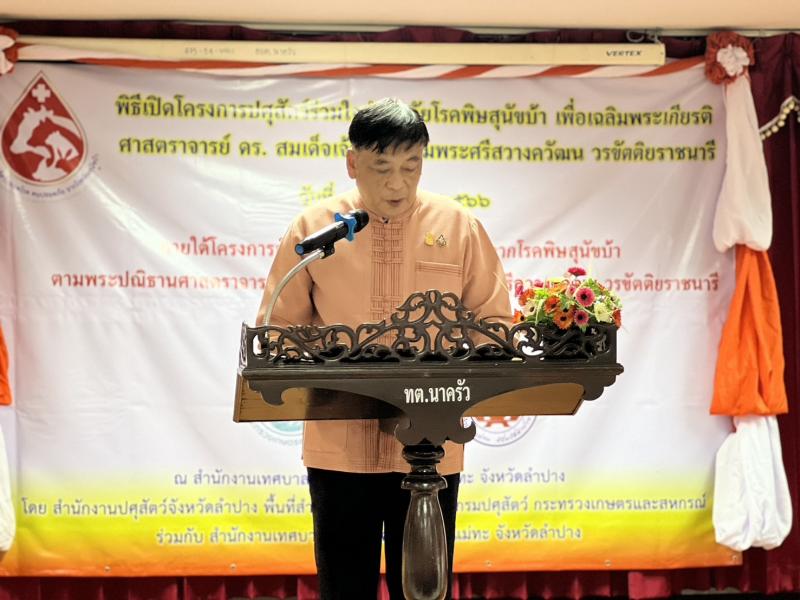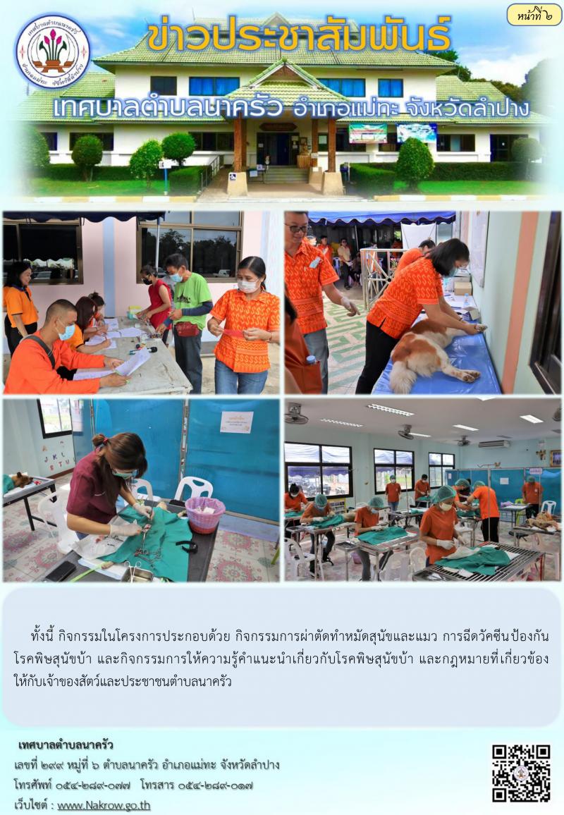 เทศบาลตำบลนาครัวร่วมกับสำนักงานปศุสัตว์จังหวัดลำปางจัดโครงการปศุสัตว์ร่วมใจกำจัดภัยพิษสุนัขบ้า เพื่อเฉลิมพระเกียรติ ศาสตราจาร ดร.สมเด็จเจ้าฟ้าฯ กรมพระศรีลวางวัฒน วรขัตติยราชนารี