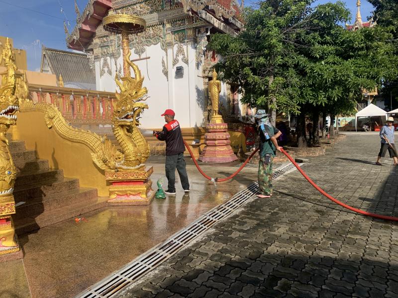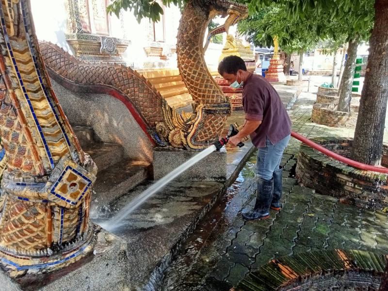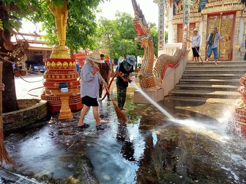 ดำเนินการล้างทำความสะอาดบริเวณโดยรอบ วัดบ้านฮ่อม หมู่ที่ 9 ตำบลนาครัว อำเภอแม่ทะ จังหวัดลำปาง