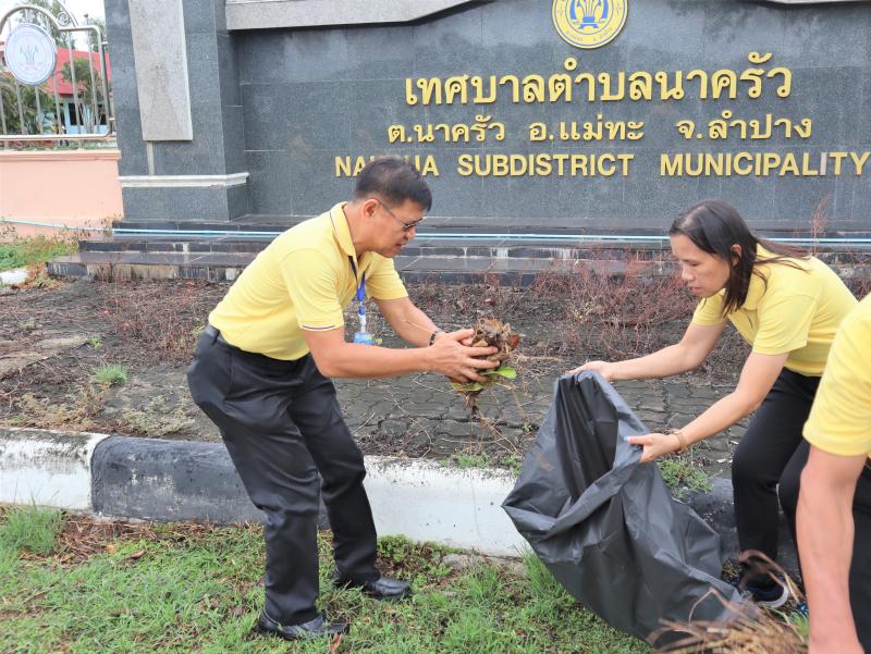 รายละเอียด : วันที่ 26 มิถุนายน 2567 เทศบาลตำบลนาครัว นำโดย นายทวี สารใจวงศ์ นายกเทศมนตรีตำบลนาครัว พร้อมด้วยคณะผู้บริหารเทศบาล หัวหน้าส่วนราชการ ข้าราชการ พนักงานเทศบาล ลูกจ้างประจำ พนักงานจ้างเทศบาลตำบลนาครัว และคณะครูโรงเรียนเทศบาลตำบลนาครัว ร่วมกันกล่าวคำปฏิญาณตน ประกาศเจตนารมณ์ต่อต้านยาเสพติด เนื่องในวันต่อต้านยาเสพติดโลก 26 มิถุนายน ประจำปี 2567 ภายใต้กรอบแนวคิด “ รวมพลังไทย สร้างครอบครัว ชุมชนอุ่นใจ พ้นภัยยาเสพติด เฉลิมพระเกียรติ 72 พรรษา มหาราชา ” ณ ลานเอนกประสงค์หน้าสำนักงานเทศบาลตำบลนาครัว และร่วมกันความสะอาดพื้นที่สาธารณะในเขตเทศบาลตำบลนาครัว เพื่อเฉลิมพระเกียรติพระบาทสมเด็จพระเจ้าอยู่หัว เนื่องในโอกาสมหามงคลเฉลิมพระชนมพรรษา 6 รอบ 28 กรกฎาคม 2567