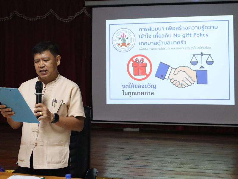 รายละเอียด : วันที่ 24 เมษายน 2568 เทศบาลตำบลนาครัว นำโดยนายศักดา กันหาเวียง ปลัดเทศบาลตำบลนาครัว ได้ดำเนินจัดการประชุมประจำเดือนให้กับพนักงานเทศบาล พนักงานครู และพนักงานจ้างเทศบาลตำบลนาครัว เพื่อติดตามการประพฤติ ปฏิบัติตน ของบุคลากรภายในเทศบาลตำบลนาครัว ในการปฏิบัติงานตามนโยบาย “ No Gift Policy “ และแนวทาง Dos&Don’ts โดยบุคลากรต้องงดรับของขวัญ และของกำนัลในการปฏิบัติหน้าที่ ทุกกรณี เป็นการปลุกจิตสำนึกการทำงานด้วยใจบริการ การสร้างวัฒนธรรมความซื่อสัตย์สุจริตให้เกิดขึ้นอย่างเป็นรูปธรรมในองค์กร ซึ่งสอดคล้องกับมาตรฐานทางจริยธรรมในหัวข้อซื่อสัตย์สุจริต มีจิตสำนึกที่ดี และรับผิดชอบต่อหน้าที่