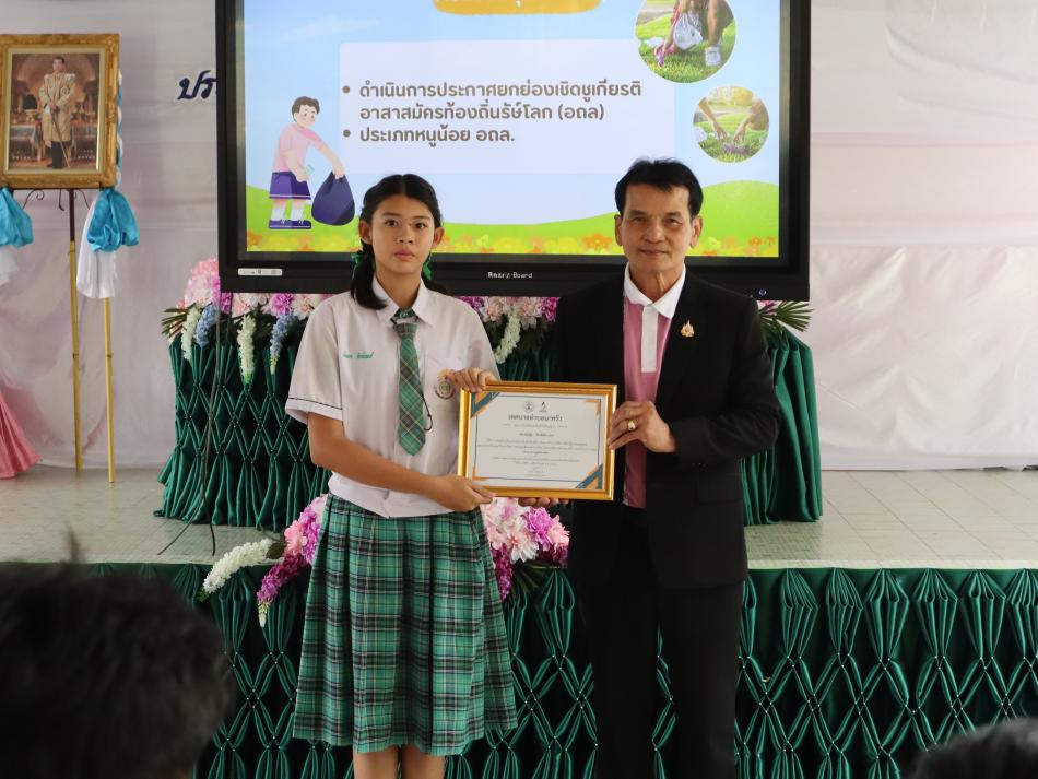 มอบใบประกาศเกียรติคุณยกย่องเชิดชูเกียรติอาสาสมัครท้องถิ่นรักษ์โลก ต้นแบบด้านการจัดการสิ่งปฏิกูลและมูลฝอยและการปกป้องและรักษาทรัพยากรธรรมชาติและสิ่งแวดล้อม