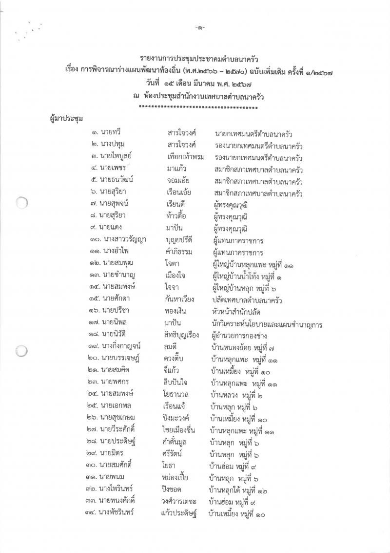 รายงานการประชุมประชาคมเทศบาลตำบลนาครัว