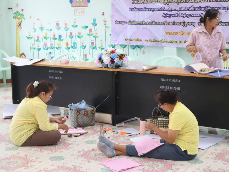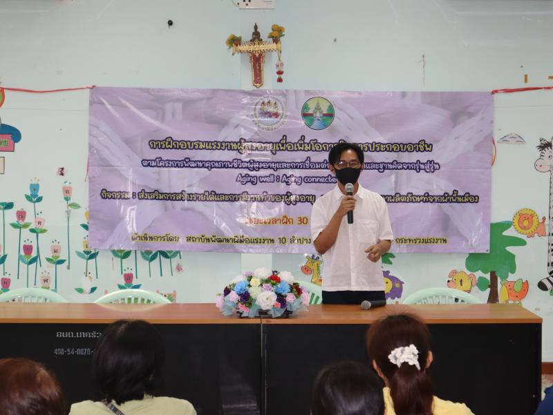 รายละเอียด : วันที่ 1 กรกฎาคม 2567 นายทวี สารใจวงศ์ นายกเทศมนตรีตำบลนาครัว มอบหมายให้นางปทุม สารใจวงศ์ รองนายกเทศมนตรีตำบลนาครัว เป็นประธานเปิดการฝึกอบรมโครงการพัฒนาคุณภาพชีวิตผู้สูงอายุและการเชื่อมต่อภูมิปัญญาและฐานคิดจากรุ่นสู่รุ่น Aging well : connected (หลักสูตร : การพัฒนาผลิตภัณฑ์จากผ้าพื้นเมือง) ณ อาคารศูนย์พัฒนาเด็กเล็ก 2 เทศบาลตำบลนาครัว การฝึกอบรมระหว่าง วันที่ 1 – 5 กรกฎาคม 2567 (ระยะเวลาการฝึก 30 ชั่วโมง) เพื่อฝึกอาชีพ เพิ่มทักษะให้กับผู้สูงอายุในพื้นที่เทศบาลตำบลนาครัว ให้มีความรู้ ความสามารถ พัฒนาทักษะฝีมือ สร้างโอกาสในการประกอบอาชีพ มีรายได้เสริม สามารถพึ่งพาตนเองได้ การฝึกอบรมดังกล่าวจัดโดยสถาบันพัฒนาฝีมือแรงงาน 10 ลำปาง กรมพัฒนาฝีมือแรงงาน กระทรวงแรงงาน