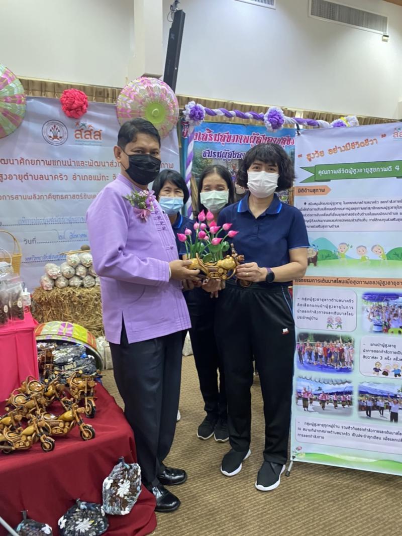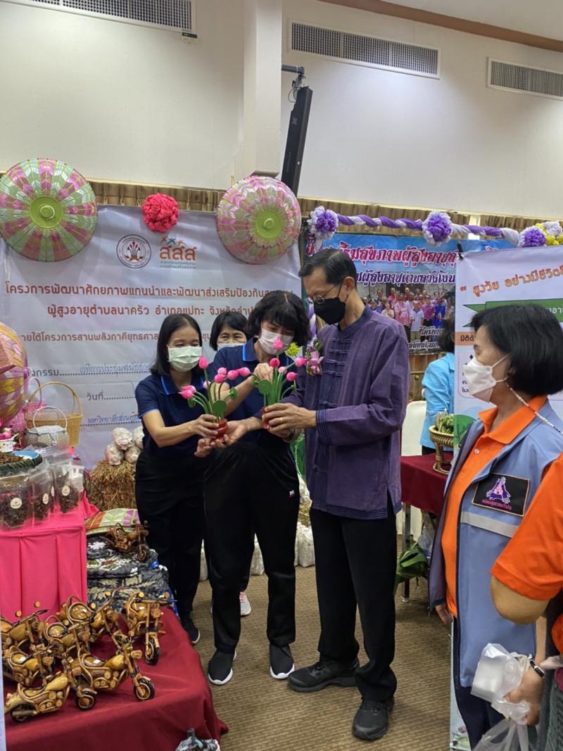 รายละเอียด : เทศบาลตำบลนาครัว โดยการนำของ นางปทุม สารใจวงศ์รองนายกเทศมนตรี พร้อมเจ้าหน้าที่ และตัวแทนผู้สูงอายุ เข้าร่วมประชุมสมัชชาสุขภาพจังหวัดลำปาง ครั้งที่ 9/2565 ตามโครงการพัฒนาศักยภาพแกนนำและพัฒนาส่งเสริมป้องกันสุขภาพผู้สูงอายุตำบลนาครัว ณ มหาวิทยาลัยสวนดุสิตศูนย์การศึกษานอกที่ตั้งลำปาง โดยร่วมจัดแสดงผลงานผลิตภัณฑ์ชุมชน ผลิตภัณฑ์ที่ผู้สูงอายุจัดทำขึ้น เช่น รถไม้ชอปเปอร์ ฝาชีแฟนซี กายอุปกรณ์ และเป็นตัวแทนเครือข่ายผู้สูงอายุร่วมแสดงกิจกรรมเข้าจังหวะประกอบเพลง
