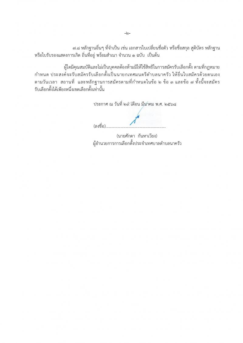 ประกาศให้มีการเลือกตั้งนายกเทศมนตรีตำบลนาครัว