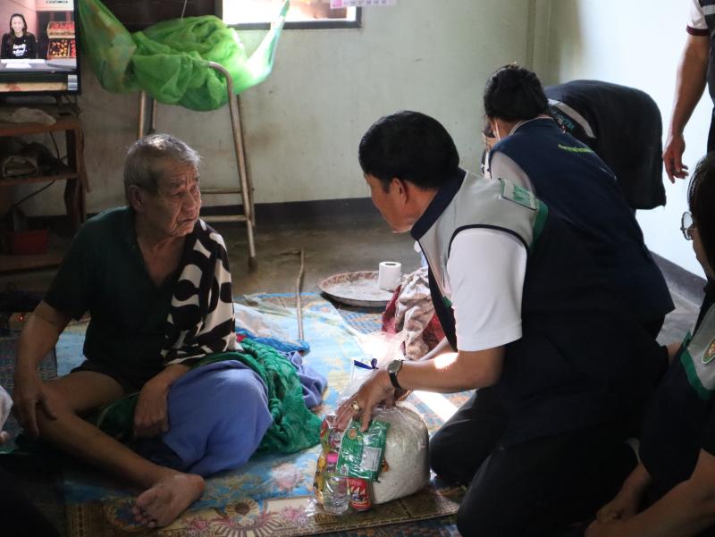 ลงพื้นที่มอบถุงยังชีพเพื่อนช่วยเพื่อนให้กับผู้ป่วยติดบ้าน ติดเตียง ผู้ยากไร้ ไร้ที่พึ่ง หรือผู้ด้อยโอกาสในเขตเทศบาลตำบลนาครัว