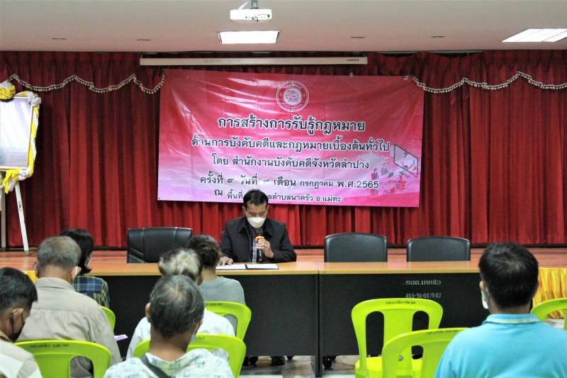 รายละเอียด : วันเสาร์ที่ 9 กรกฎาคม 2565 นายทวี สารใจวงศ์ นายกเทศมนตรีตำบลนาครัว ได้รับเกียรติเป็นประธานเปิดการอบรมสร้างการรับรู้กฎหมายด้านการบังคับคดีและกฎหมายเบื้องต้นทั่วไป จัดโดย สำนักงานบังคับคดีจังหวัดลำปาง ณ ห้องประชุมชั้น 2 เทศบาลตำบลนาครัว สำหรับการจัดอบรมในครั้งนี้ มีผู้เข้าร่วมการฝึกอบรมฯ ประกอบไปด้วย คณะผู้บริหารเทศบาลตำบลนาครัว สมาชิกสภาเทศบาล ผู้ใหญ่บ้าน และประชาชนในเขตรับผิดชอบของเทศบาลตำบลนาครัว โดยมีวัตถุประสงค์เพื่อช่วยให้ประชาชนที่มีหนี้แม้มีคำพิพากษาแล้วยังสามารถหาทางออกกับเจ้าหนี้ได้โดยไม่ถูกยึดทรัพย์และเน้นแก้ไขปัญหาหนี้สินภาคประชาชนให้ครอบคลุมทุกกลุ่มหนี้