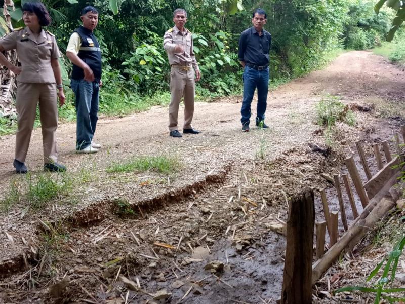สำรวจถนนเข้าสู่พื้นที่การเกษตรที่รับผลกระทบจากเหตุอุทกภัยในพื้นที่บ้านน้ำโท้ง หมู่ที่ 1 ตำบลนาครัว อำแม่ทะ จังหวัดลำปาง
