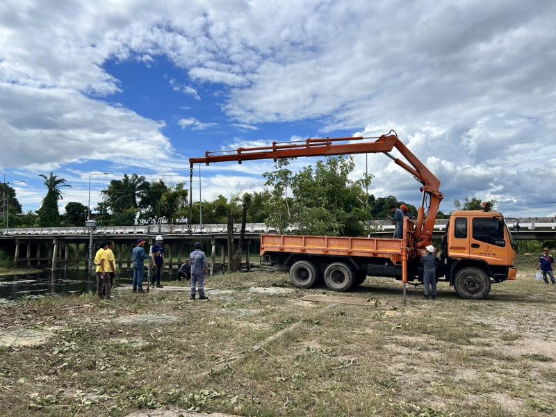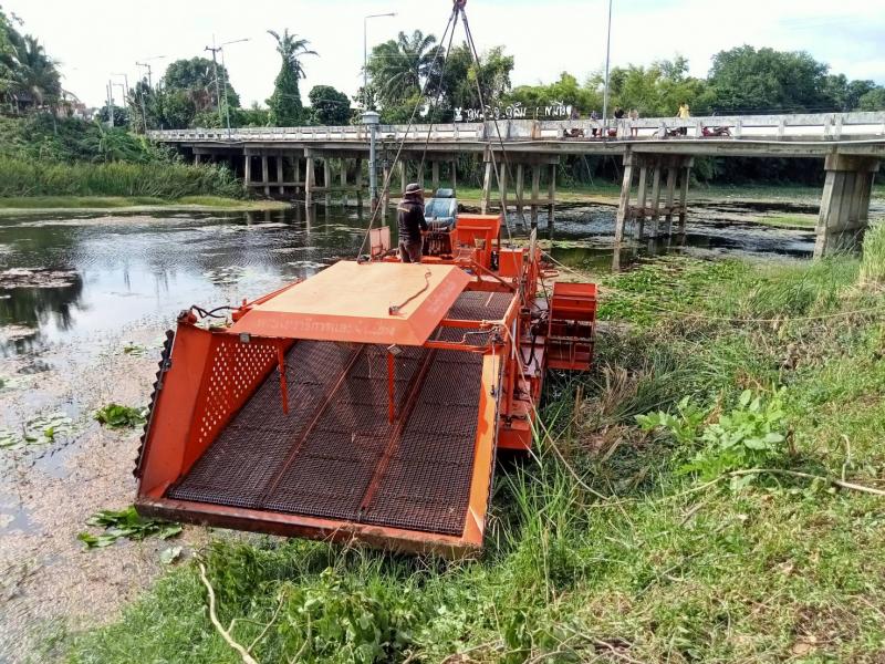 คณะผู้บริหาร ลงพื้นที่สังเกตุการณ์ในการนำเครื่องจักรกำจัดวัชพืชลงแม่น้ำจาง บริเวณลานหลุก หมู่ที่ 12 ตำบลนาครัว เพื่อดำเนินการโครงการคลองสวยน้ำใส กำจัดผักตบชวาและวัชพืชในลำห้วย/แม่น้ำในเขตเทศบาลตำบลนาครัว