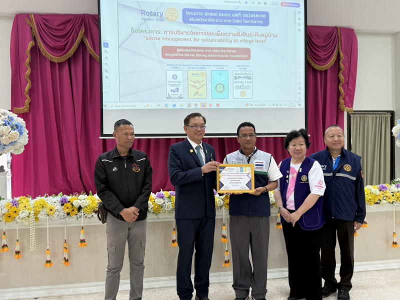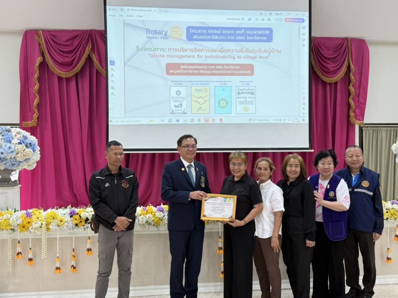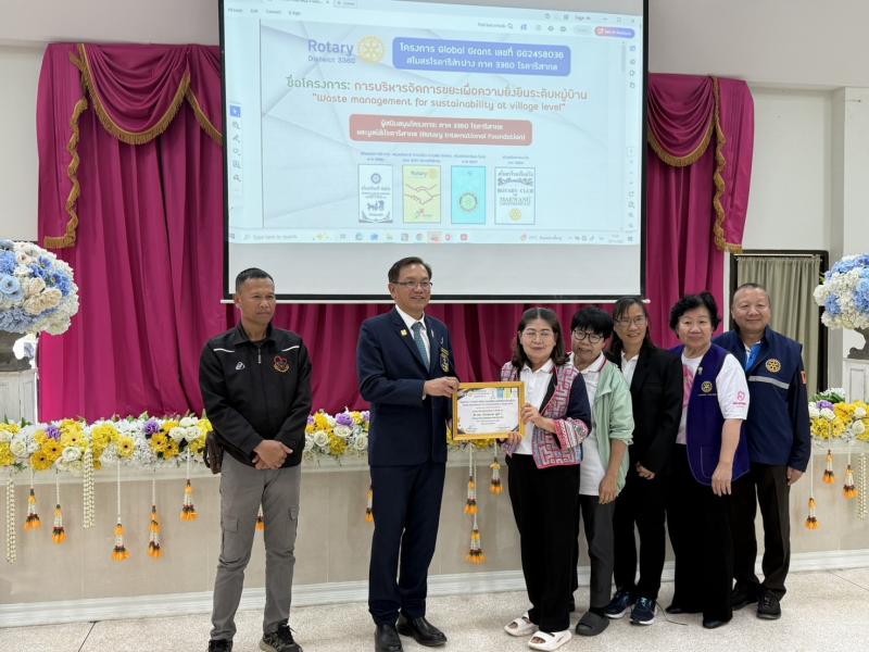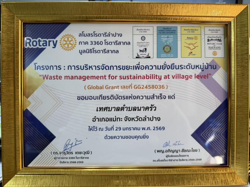 สโมสรโรตารีลำปาง ภาค 3360 RI. โรตารีสากล ได้มอบใบประกาศเกียรติบัตรการเข้าร่วมโครงการบริหารจัดการขยะเพื่อความยั่งยืนระดับหมู่บ้านให้กับเทศบาลตำบลนาครัว