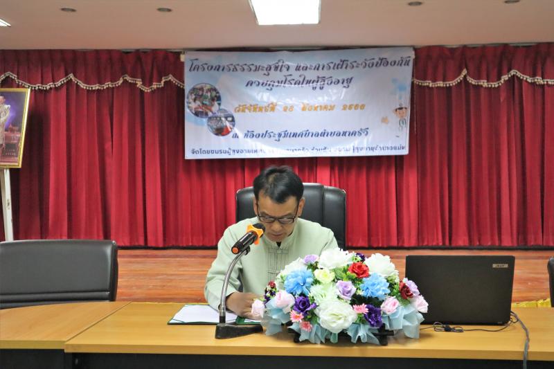 นายทวี สารใจวงศ์ นายกเทศมนตรีตำบลนาครัว เป็นประธานกล่าวเปิดโครงการธรรมะสุขใจ และการเฝ้าระวังป้องกัน ควบคุมโรคในผู้สูงอายุ