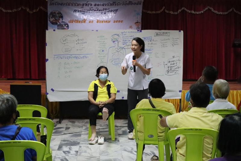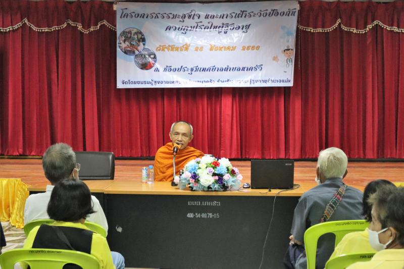 กิจกรรมในโครงการประกอบด้วยการฟังธรรมะโดยรับความเมตตาจาก พระครูเกษมธุราทร จากวัดสันฐาน และการให้ความรู้ในการดูแลสุขภาพของผู้สูงอายุจากแพทย์หญิงณัฐกานต์ ตาบุตรวงศ์ นายแพทย์เชี่ยวชาญจากโรคพยาบาลแม่ทะ