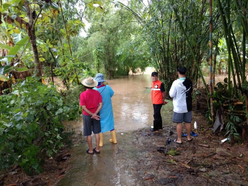 นายทวี สารใจวงศ์ นายกเทศมนตรีตำบลนาครัว พร้อมด้วยคณะผู้บริหาร และเจ้าหน้าที่งานป้องกันฯ ลงพื้นที่สำรวจน้ำท่วมขังในหมู่บ้าน และสำรวจแม่นำจาง