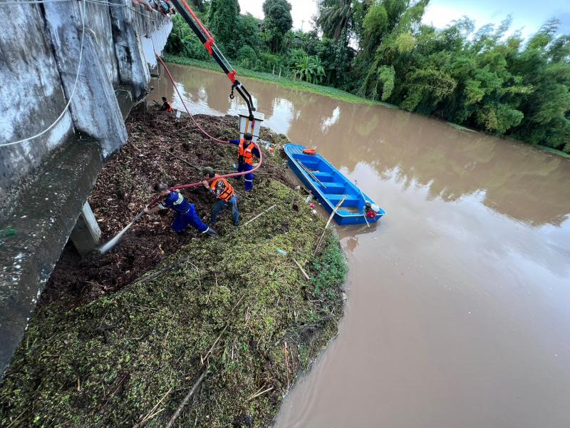 รายละเอียด : เนื่องจากฝนตกติดต่อกันเป็นเวลาหลายวัน ทำให้ระดับแม่น้ำจางสูงขึ้น และเกิดน้ำท่วมขังหลายพื้นที่ในเขตตำบลนาครัว นายทวี สารใจวงศ์ นายกเทศมนตรีตำบลนาครัว พร้อมด้วยคณะผู้บริหาร และเจ้าหน้าที่งานป้องกันฯ ลงพื้นที่สำรวจน้ำท่วมขังในหมู่บ้าน และรับฟังปัญหาของประชาชน พร้อมทั้งจะได้ดำเนินการแก้ไขต่อไป ต่อจากนั้นได้ไปสำรวจแม่น้ำจาง สำรวจสถานีสูบน้ำด้วยไฟฟ้าเพื่อป้องกันและดูแลความเรียบร้อยของสถานีสูบ จากการสำรวจพบว่า มีเศษวัชพืชและเศษไม้ ติดอยู่ใต้สะพานแม่น้ำจาง (ข้างวัดบ้านหลุก) เบื้องต้นทางเทศบาลตำบลนาครัวได้เปิดประตูฝายแม่น้ำจาง(บ้านน้ำโท้ง) เพื่อระบายน้ำ และดำเนินการนำเศษวัชพืชและเศษไม้ที่ติดอยู่ใต้สะพานออก