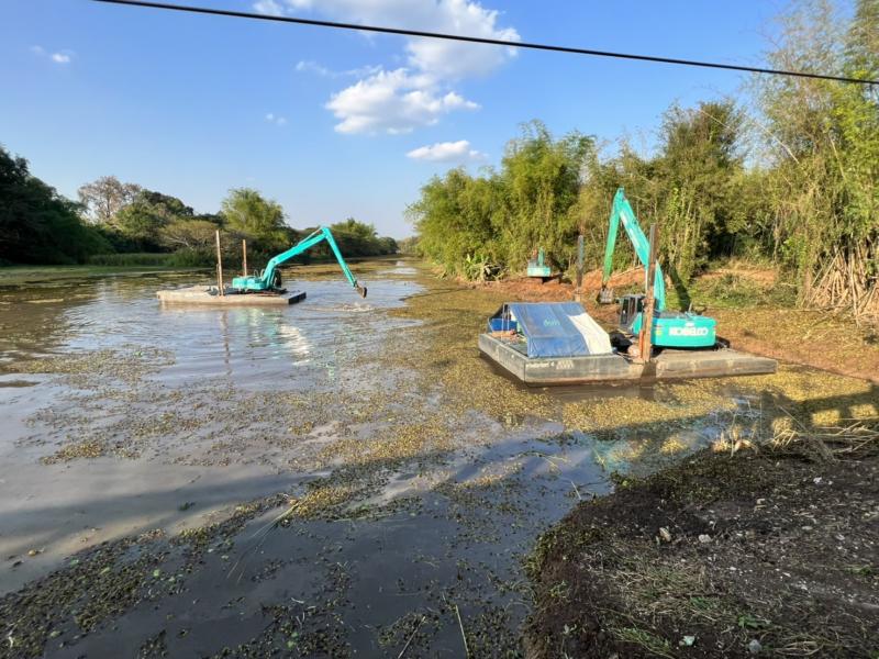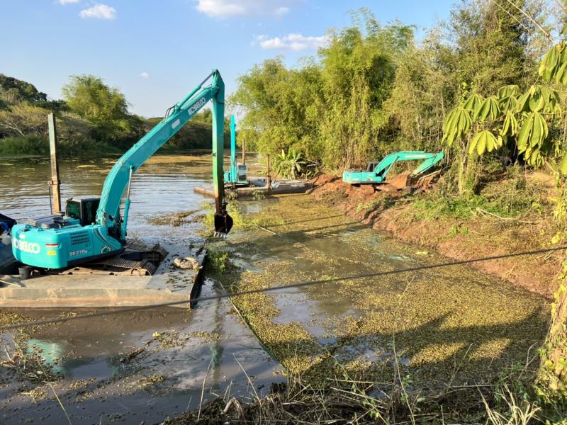 โครงการกำจัดวัชพืชในแม่น้ำจาง โดยงบประมาณจาก อบจ.