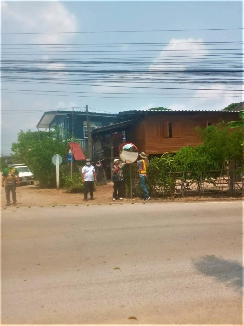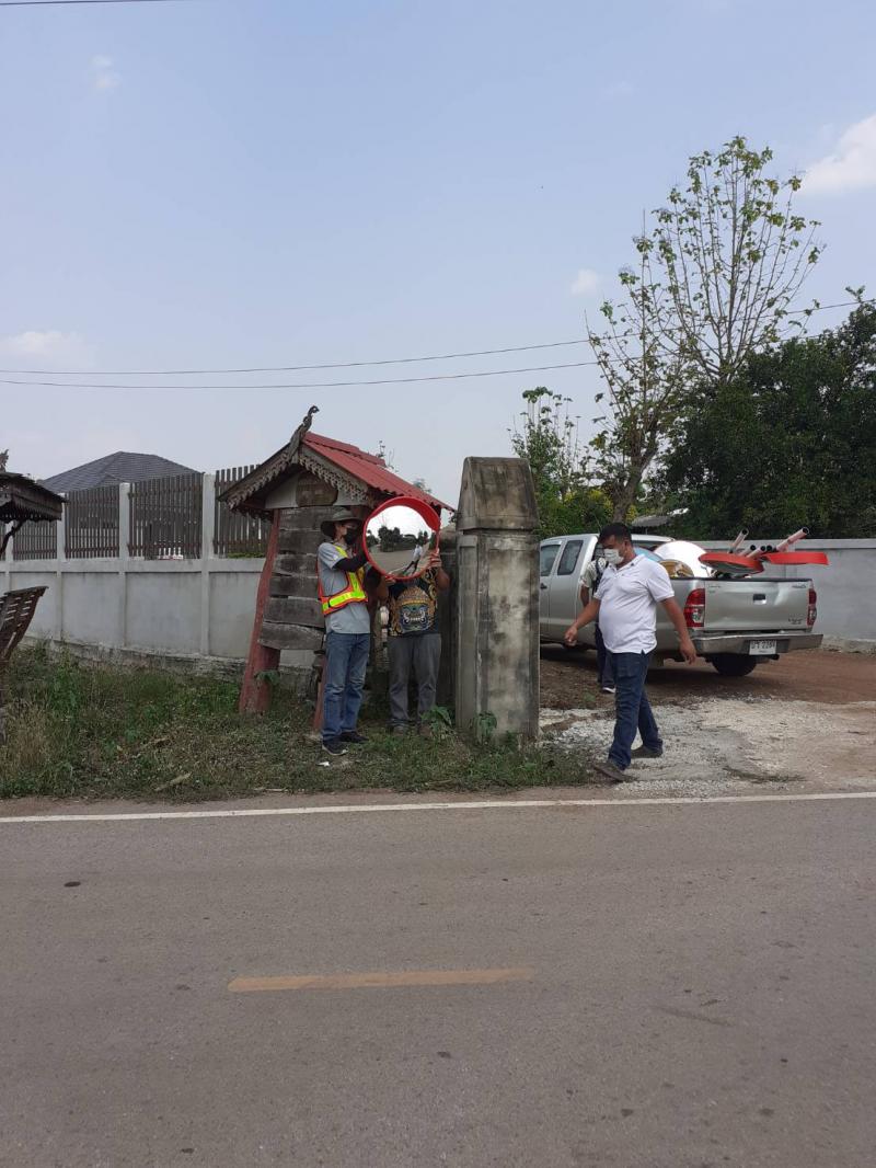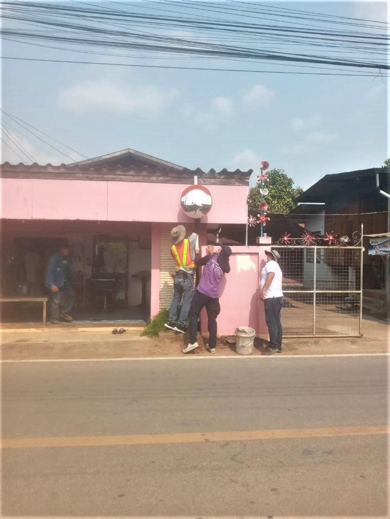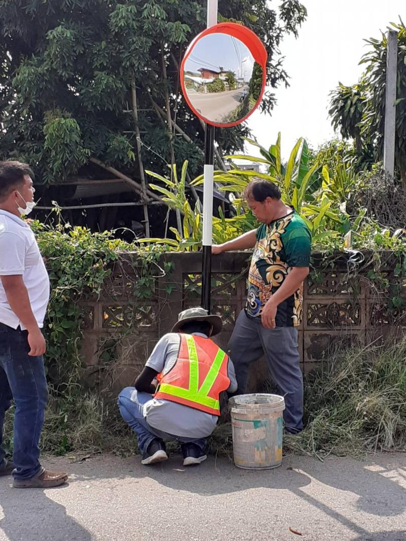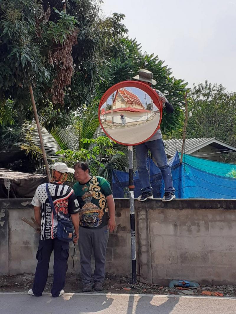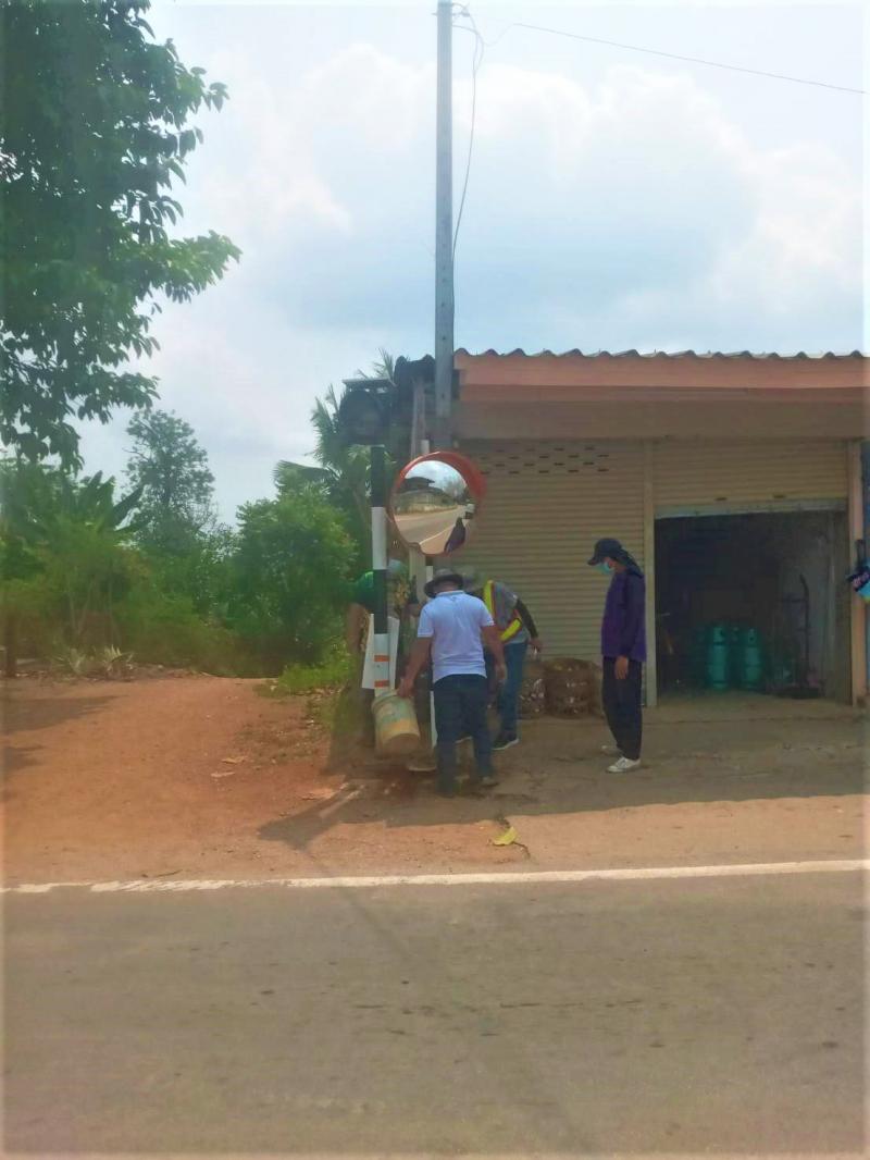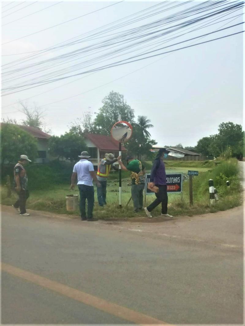 เจ้าหน้าที่งานป้องกันฯและกองช่างเทศบาลตำบลนาครัว ดำเนินการติดตั้งกระจกโค้งมนตามจุดเสี่ยงทางแยก ริมถนน