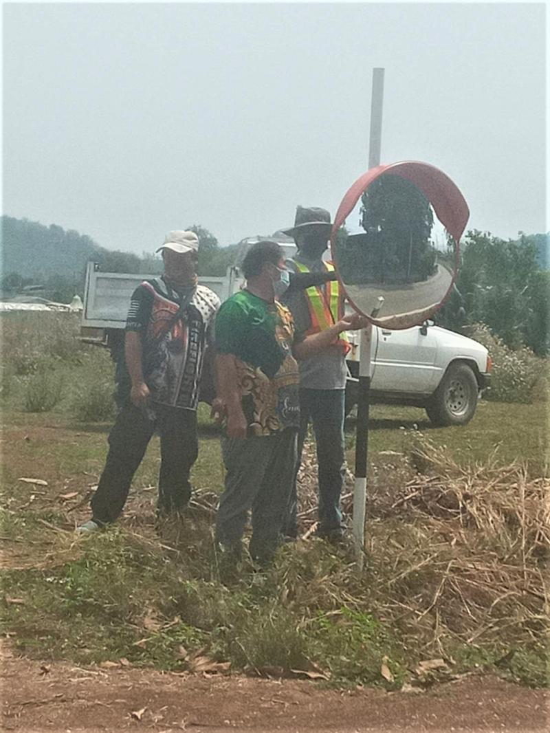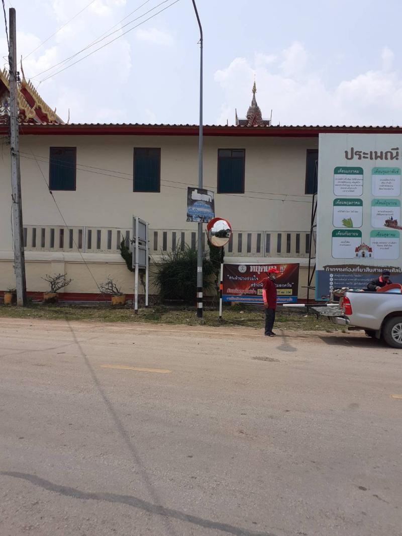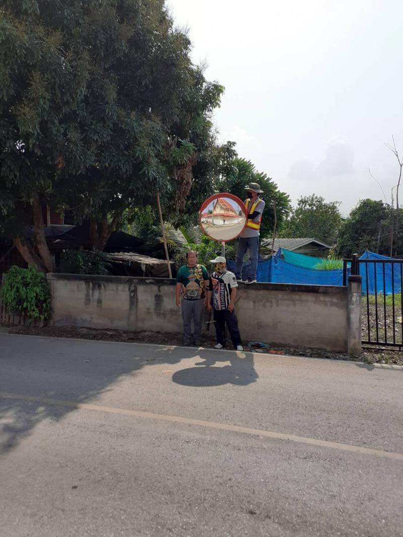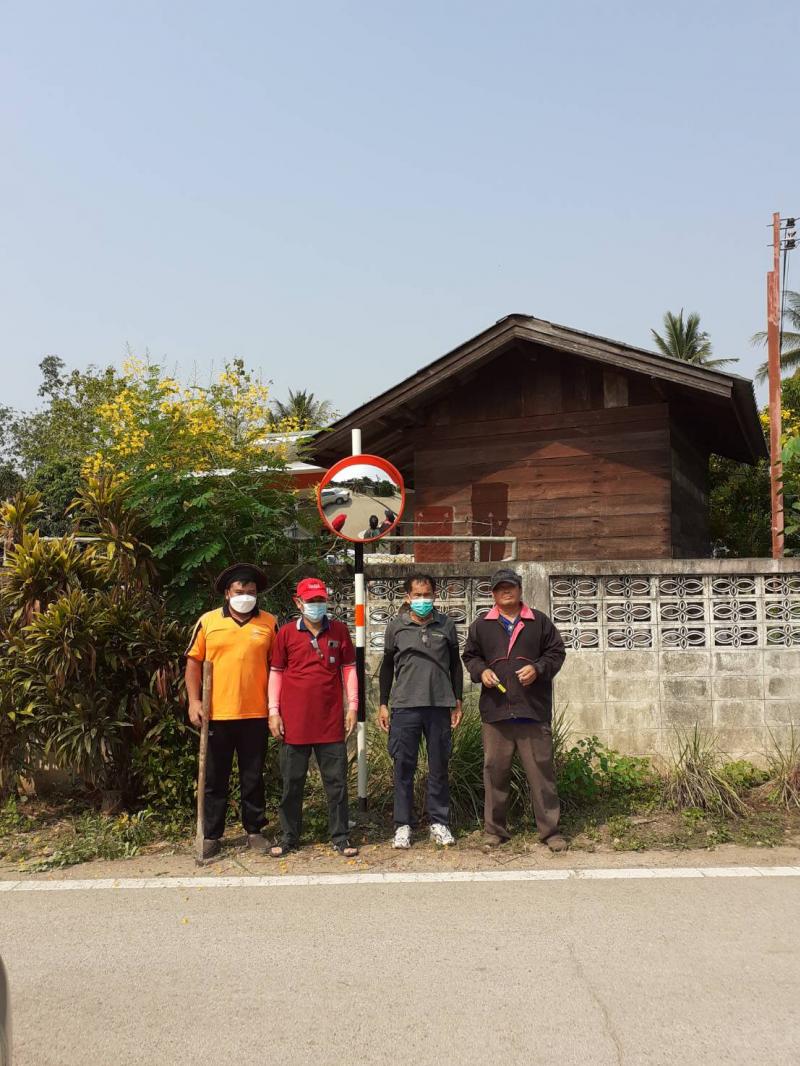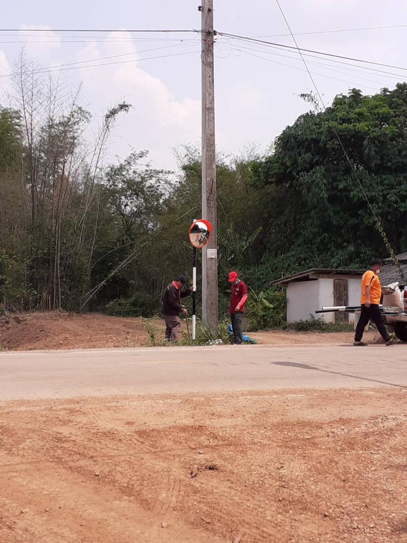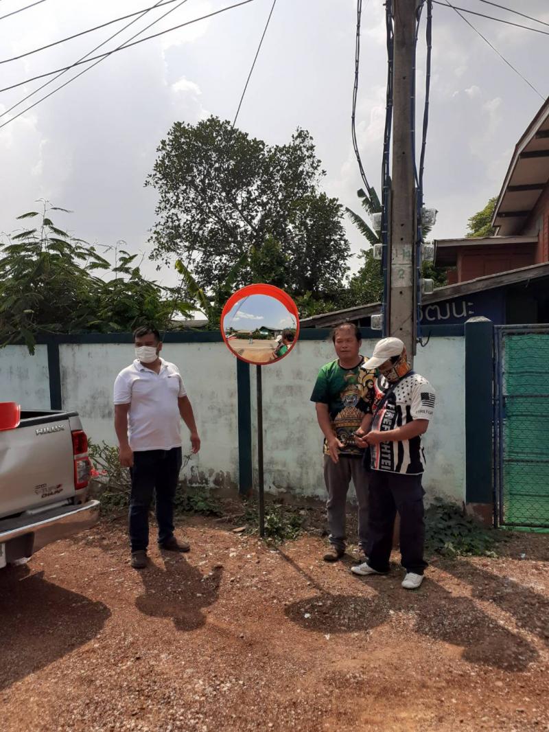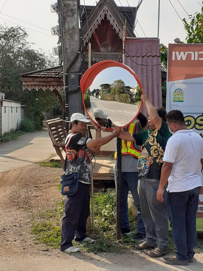 เจ้าหน้าที่งานป้องกันฯและกองช่างเทศบาลตำบลนาครัว ดำเนินการติดตั้งกระจกโค้งมนตามจุดเสี่ยงทางแยก ริมถนน