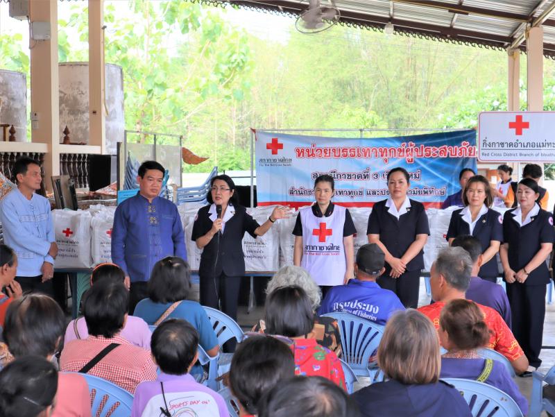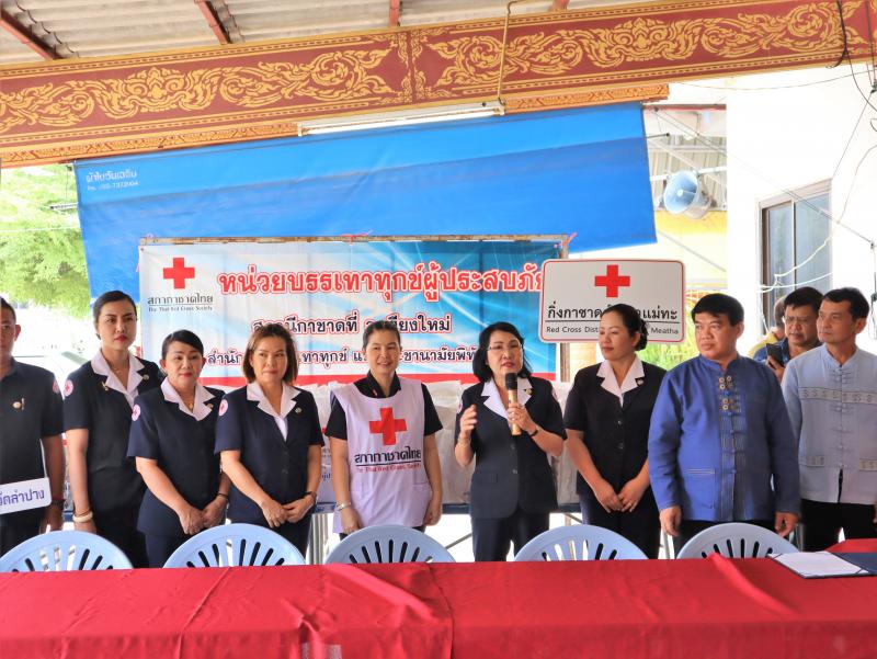 รายละเอียด : วันที่ 9 พฤษภาคม 2567 เหล่ากาชาดจังหวัดลำปาง นำโดย รองศาสตราจารย์ ดร.สุพรรณี ฉายะบุตร นายกเหล่ากาชาดจังหวัดลำปาง ร่วมกับ สถานีกาชาดที่ 3 เชียงใหม่ และกิ่งกาชาดอำเภอแม่ทะ ลงพื้นที่มอบถุงยังชีพชุดธารน้ำใจสภากาชาดไทย เพื่อบรรเทาทุกข์ผู้ประสบวาตภัยในพื้นที่เทศบาลตำบลนาครัว ณ วัดนำโท้ง วัดศรีถ้อย และวัดบ้านหลุก ตำบลนาครัว อำเภอแม่ทะ จังหวัดลำปาง การนี้ นายทวี สารใจวงศ์ นายกเทศมนตรีตำบลนาครัว พร้อมด้วยคณะผู้บริหารเทศบาล ได้ให้การต้อนรับเหล่ากาชาดจังหวัดลำปาง สถานีกาชาดที่ 3 เชียงใหม่ และกิ่งกาชาดอำเภอแม่ทะ เพื่อร่วมมอบถุงยังชีพน้ำใจสภากาชาดไทยให้กับผู้ประสบวาตภัยในพื้นที่เทศบาลตำบลนาครัว เป็นไปด้วยความเรียบร้อย