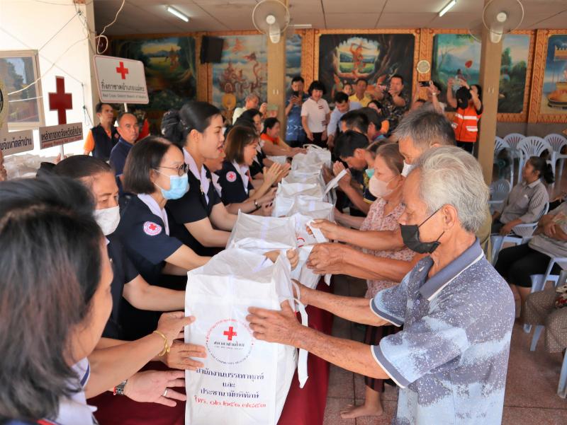 มอบถุงยังชีพชุดธารน้ำใจสภากาชาดไทย เพื่อบรรเทาทุกข์ผู้ประสบวาตภัยในพื้นที่เทศบาลตำบลนาครัว