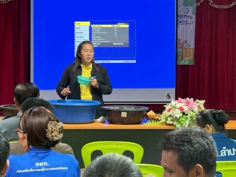 2.การบรรยายให้ความรู้เกี่ยวกับการจัดการขยะต้นทางอย่างถูกวิธี โดยใช้หลัก 3Rs โดยนางสาวแสงอรุณ เจริญจันทร์แดง นักวิชาการสิ่งแวดล้อม สำนักงานทรัพยากรธรรมชาติและสิ่งแวดล้อมจังหวัดลำปาง (ทสจ.ลำปาง)