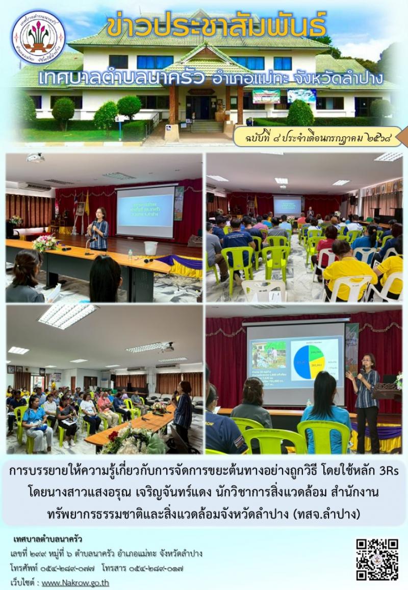 โครงการอบรมให้ความรู้การบริหารจัดการและลดปริมาณขยะมูลฝอยในเขตเทศบาลตำบลนาครัว ประจำปีงบประมาณ พ.ศ.2568