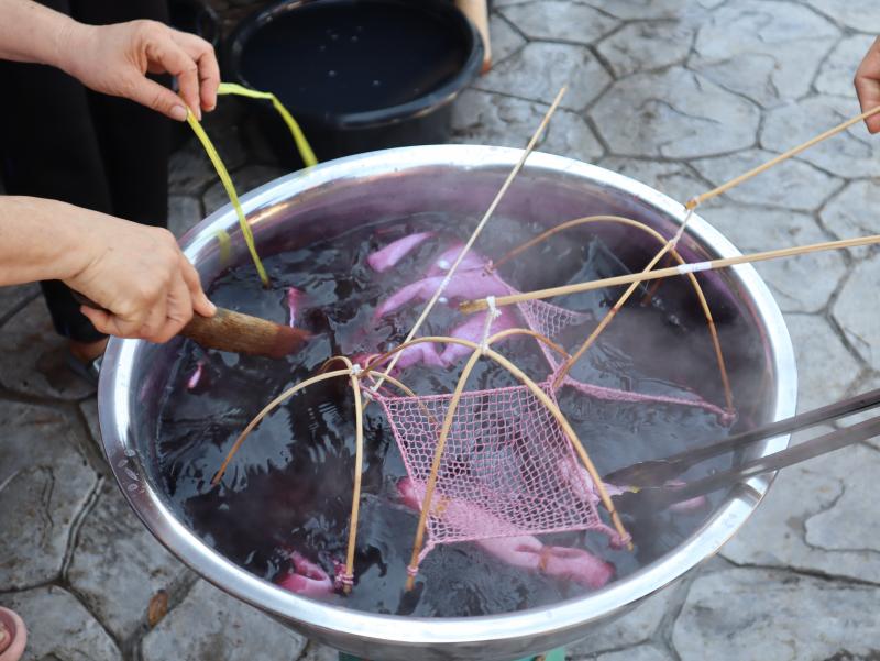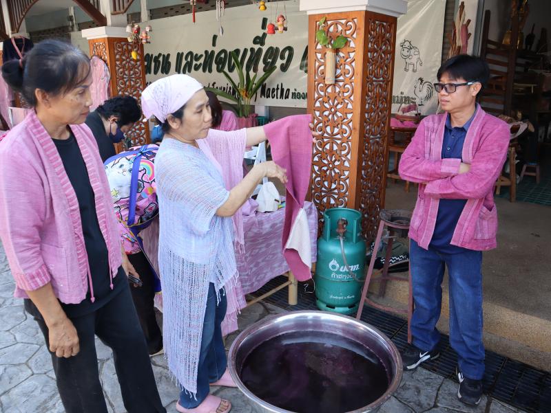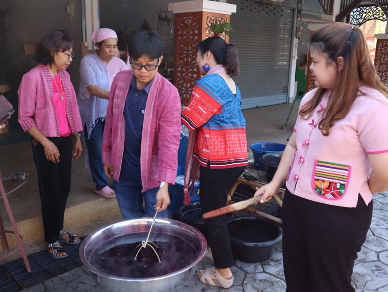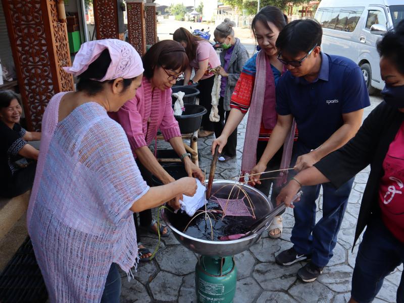 กิจกรรมโครงการศูนย์ฝึกอาชีพชุมชน : การศึกษาชั้นเรียนวิชาชีพ “ วิชาการทำของใช้จากผ้า , การทำผ้าย้อมครั่ง ” จัดโดย กศน. ตำบลนาครัว ร่วมกับ กลุ่มสล่าสตรีบ้านหลุก