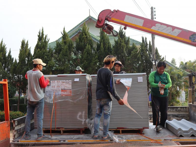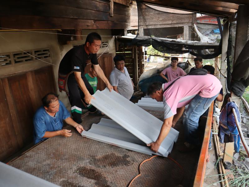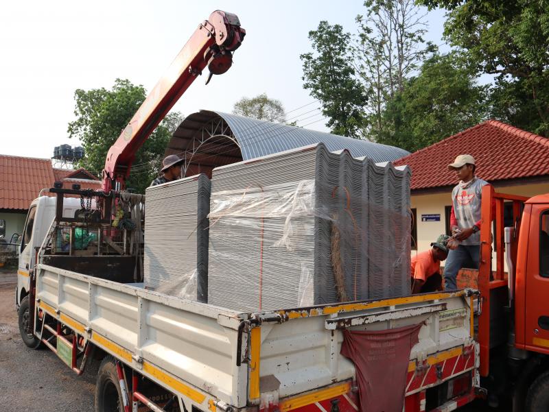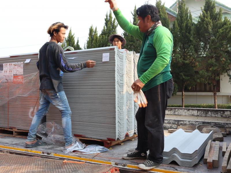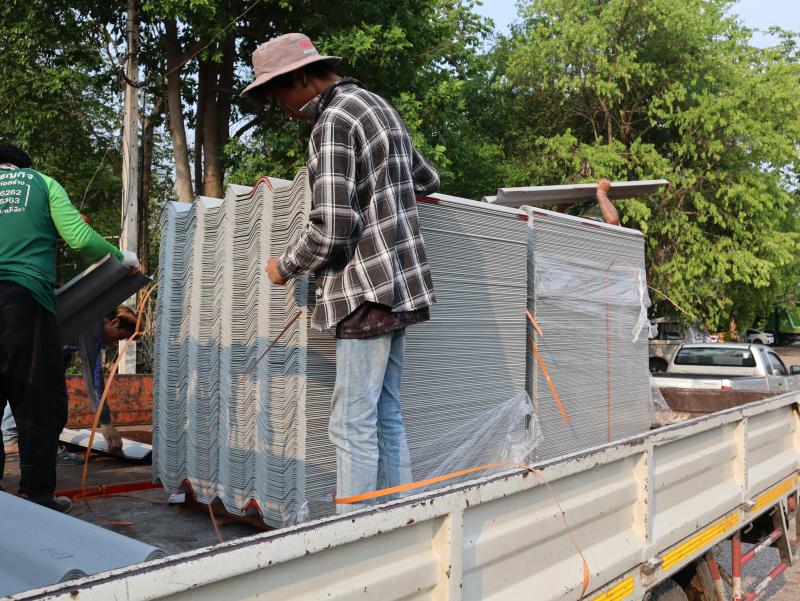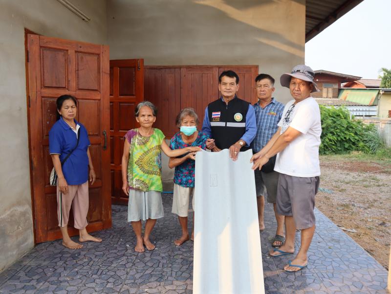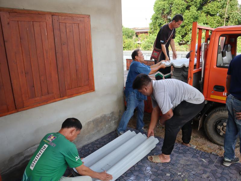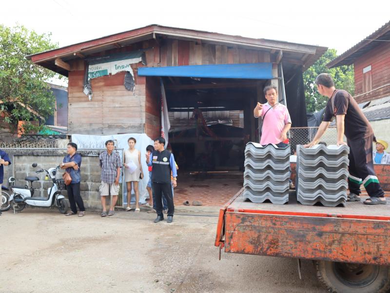 ลงพื้นที่มอบกระเบื้องลอนคู่ เพื่อบรรเทาความเดือดร้อนของประชาชนในพื้นที่เทศบาลตำบลนาครัว จากกรณีพายุฤดูร้อน