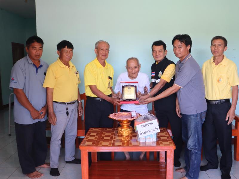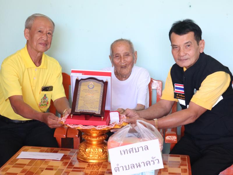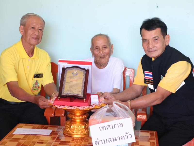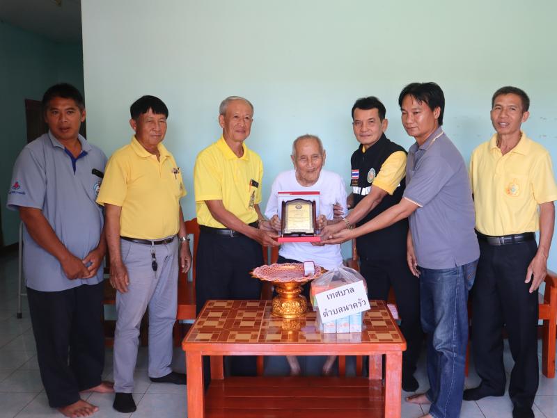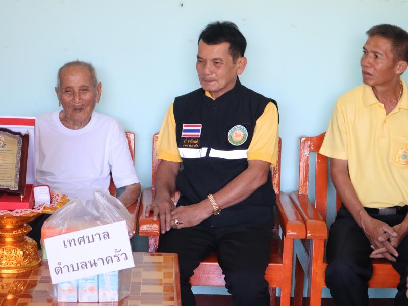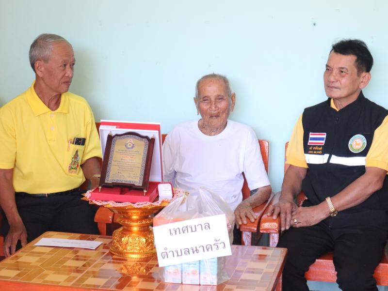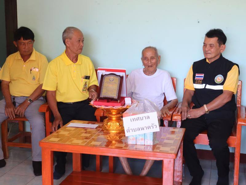 รายละเอียด : วันที่ 29 สิงหาคม 2567 นายทวี สารใจวงศ์ นายกเทศมนตรีตำบลนาครัว พร้อมด้วย นายไพบูลย์ เทือกท้าวพรม รองนายกเทศมนตรีตำบลนาครัว และนายสิงห์คำ ฝั้นแปง เลขานุการนายกเทศมนตรีตำบลนาครัว มอบโล่ห์ผู้สูงอายุ ให้แก่นายเปียง ใจศรี อายุ 100 ปี หมู่ 10 บ้านเหมี้ยง ตำบลนาครัว อำเภอแม่ทะ จังหวัดลำปาง