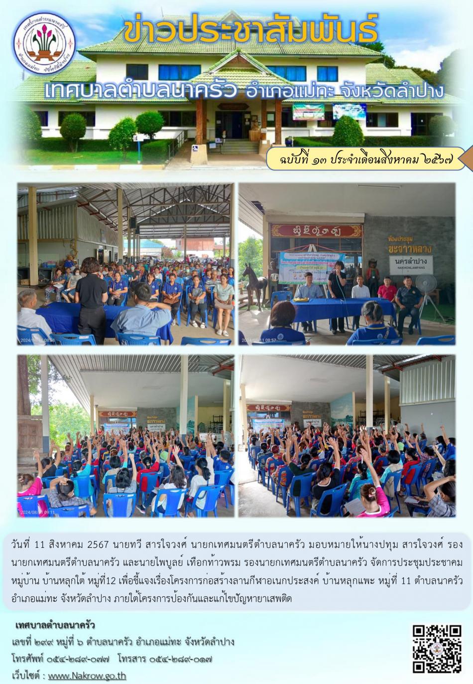 โครงการก่อสร้างลานกีฬาอเนกประสงค์ บ้านหลุกแพะ หมู่ที่ 11 ตำบลนาครัว อำเภอแม่ทะ จังหวัดลำปาง [11 สิงหาคม 2567]