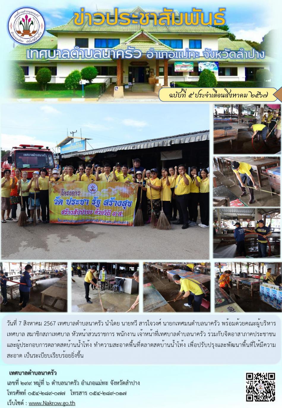 ทำความสะอาดตลาดสดบ้านน้ำโท้งร่วมกับ.อสม.และเจ้าหน้าที่เทศบาลตำบลนาครัว [7 สิงหาคม 2567]