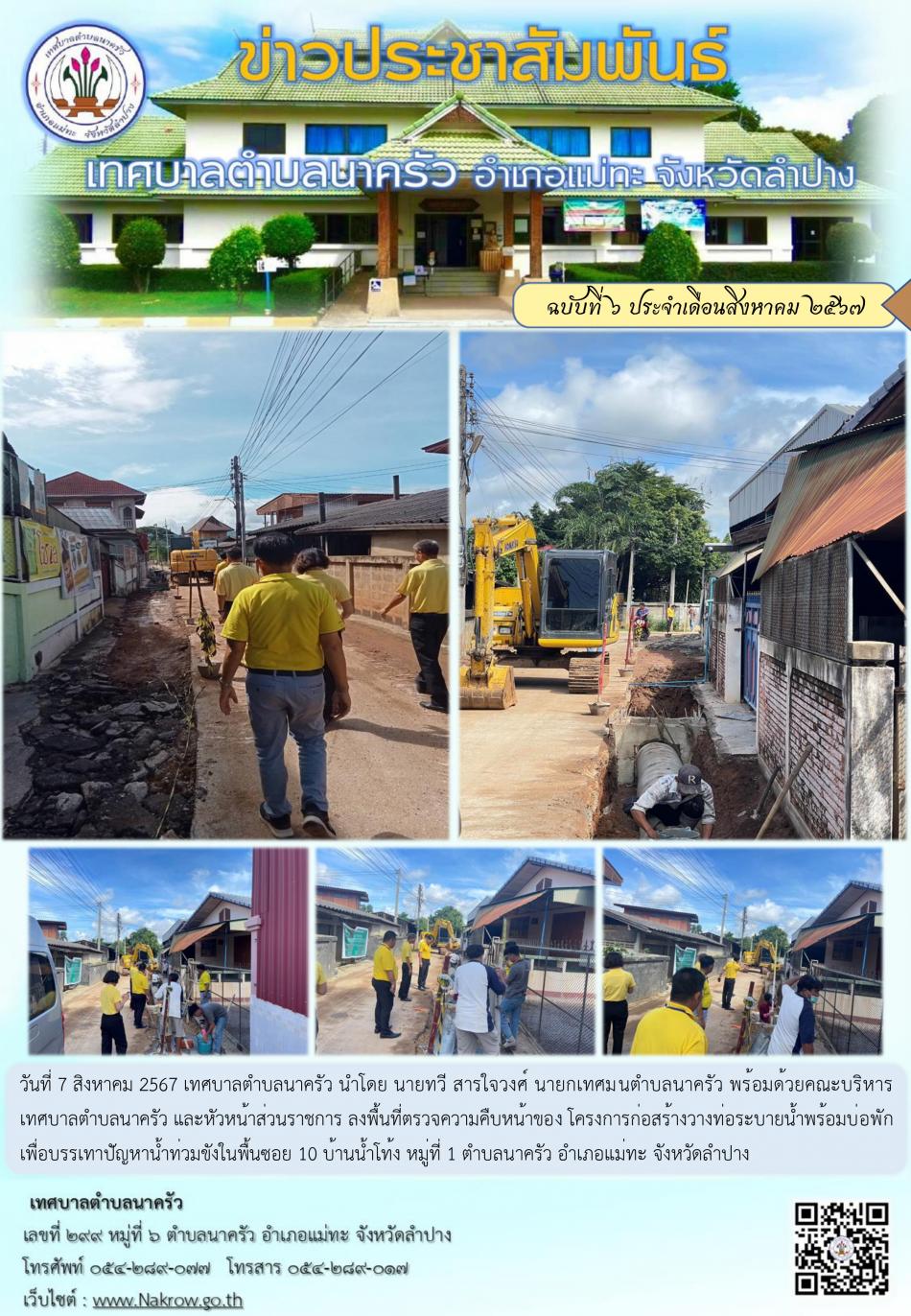 ลงพื้นที่่ตรวจความคืบหน้าของ โครงการก่อสร้างวางท่อระบายน้ำพร้อมบ่อพัก ซอย 10 บ้านน้ำโท้ง หมู่ที่ 1 ตำบลนาครัว อำเภอแม่ทะ จังหวัดลำปาง [7 สิงหาคม 2567]