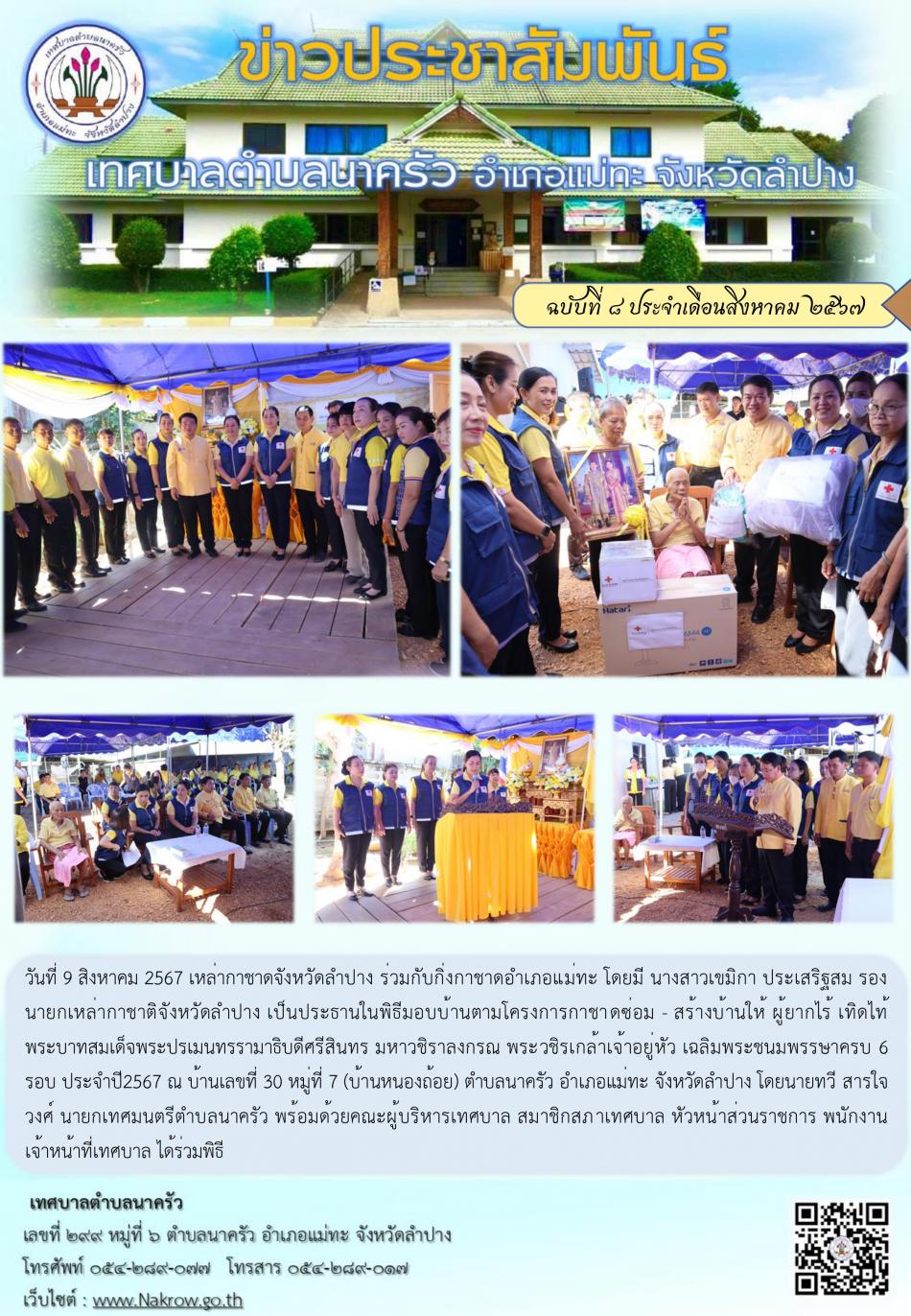 พิธีมอบบ้านตามโครงการกาชาดซ่อม - สร้างบ้านให้ ผู้ยากไร้ เทิดไท้พระบาทสมเด็จพระปรเมนทรรามาธิบดีศรีสินทร มหาวชิราลงกรณ พระวชิรเกล้าเจ้าอยู่หัว เฉลิมพระชนมพรรษาครบ 6 รอบ ประจำปี2567 ณ บ้านเลขที่ 30 หมู่ที่ 7... [9 สิงหาคม 2567]