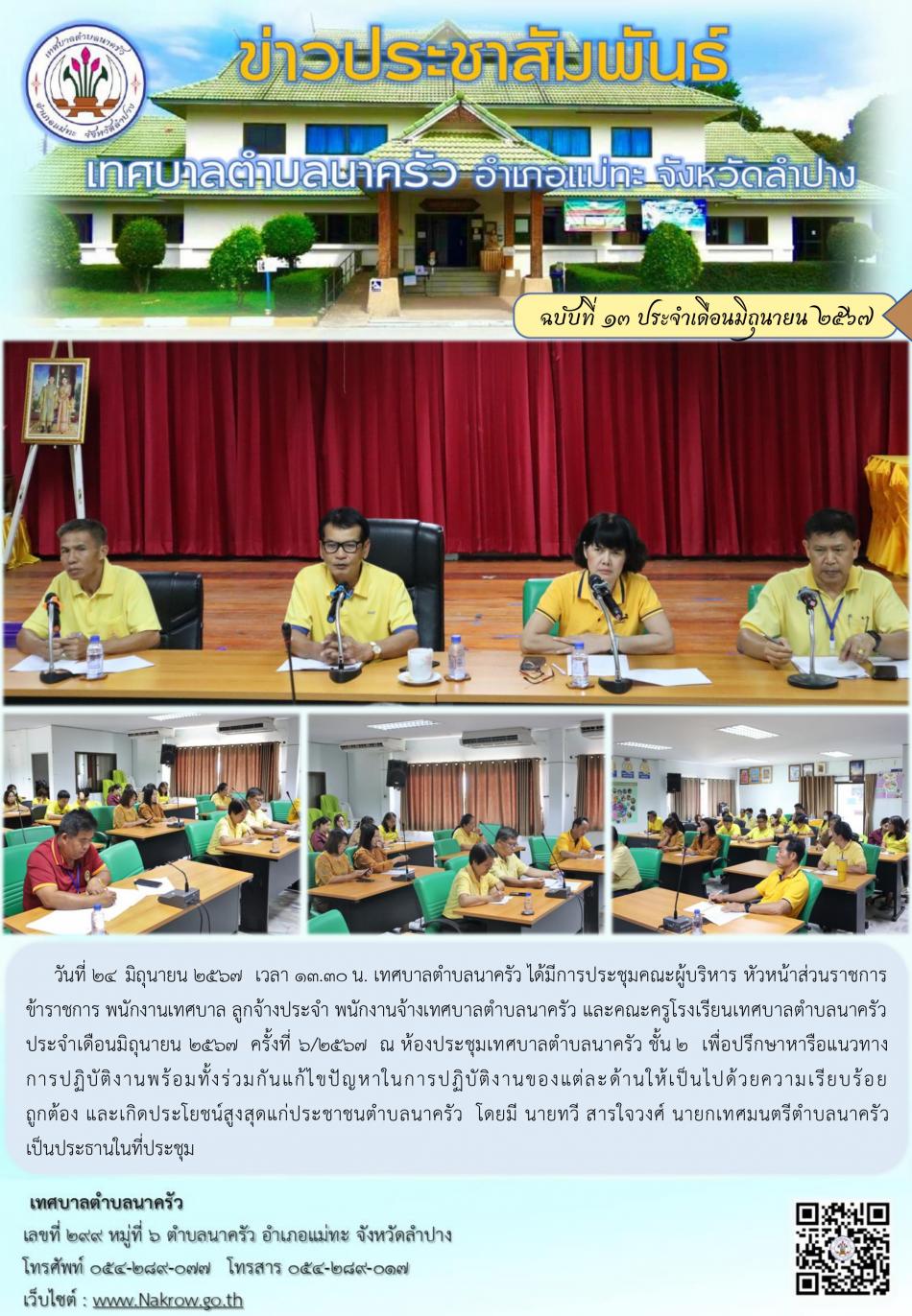 ประชุมพนักงานจ้างเทศบาลตำบลนาครัว ประจำเดือนมิถุนายน 2567 [24 มิถุนายน 2567]
