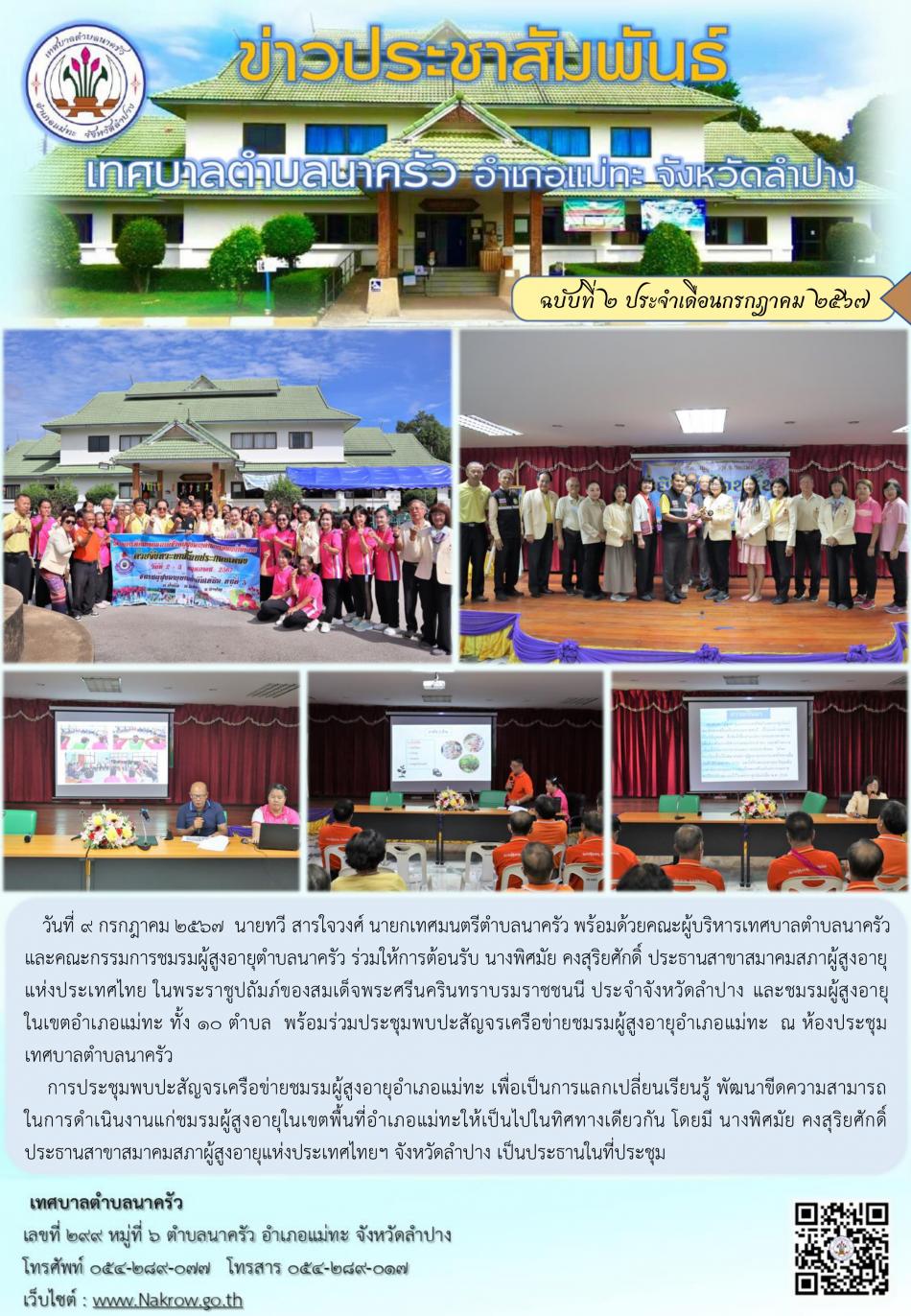 ร่วมให้การต้อนรับคณะสาขาสมาคมสภาผู้สูงอายุแห่งประเทศไทยฯ ประจำจังหวัดลำปาง และการประชุมพบปะสัญจรเครือข่ายชมรมผู้สูงอายุอำเภอแม่ทะ [9 กรกฎาคม 2567]