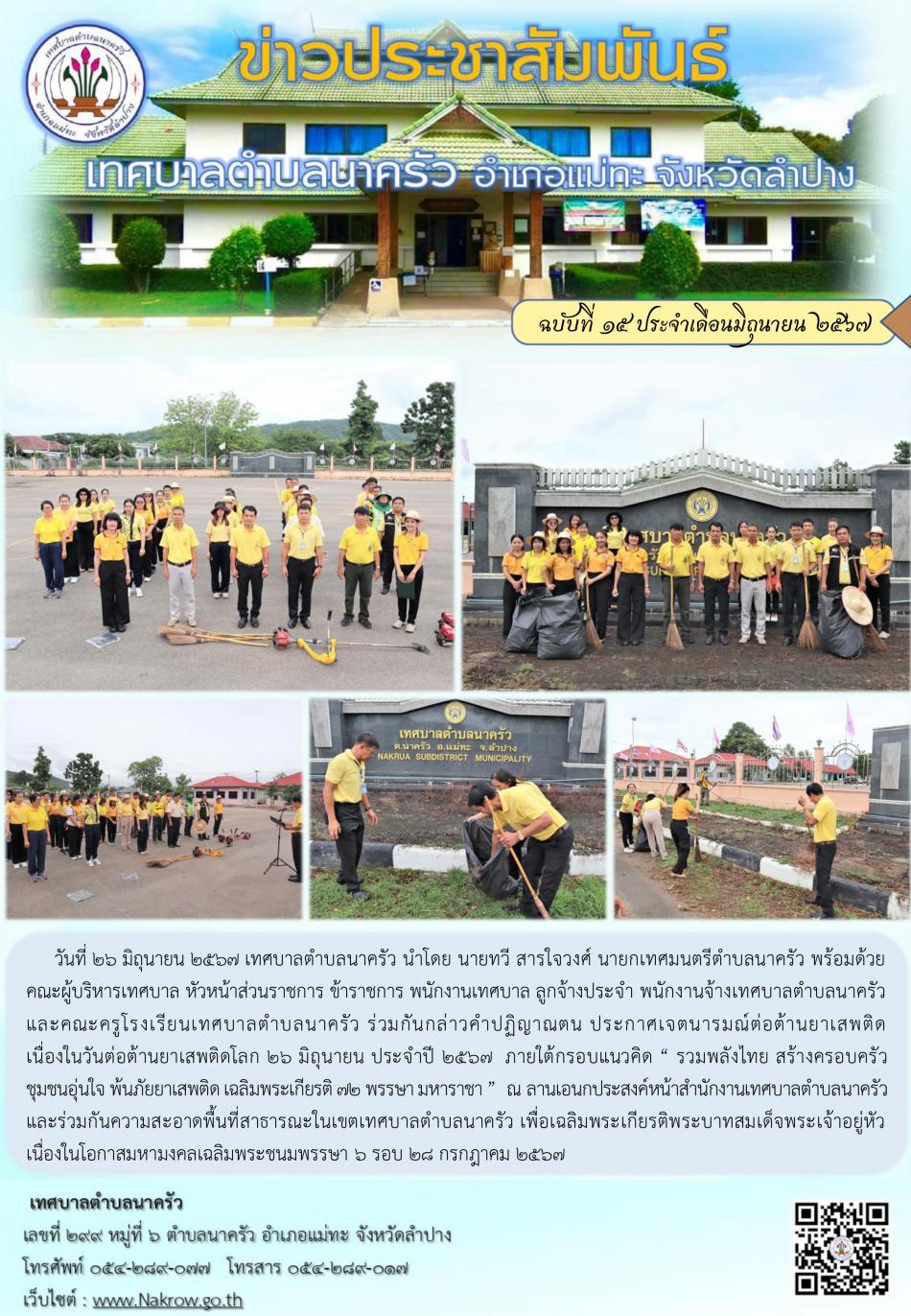 กิจกรรมบำเพ็ญประโยชน์เฉลิมพระเกียรติฯ เนื่องในโอกาสมหามงคลเฉลิมพระชนมพรรษา 6 รอบ 28 กรกฎาคม 2567 และกิจกรรมวันต่อต้านยาเสพติดโลก 26 มิถุนายน ประจำปี 2567 [26 มิถุนายน 2567]