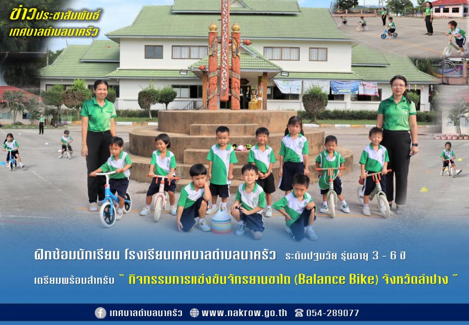 ฝึกซ้อมนักเรียนระดับปฐมวัย รุ่นอายุ 3 – 6 ปี เพื่อเตรียมพร้อมสำหรับกิจกรรมการแข่งขันจักรยานขาไถ (Balance Bike) จังหวัดลำปาง [5 กรกฎาคม 2567]