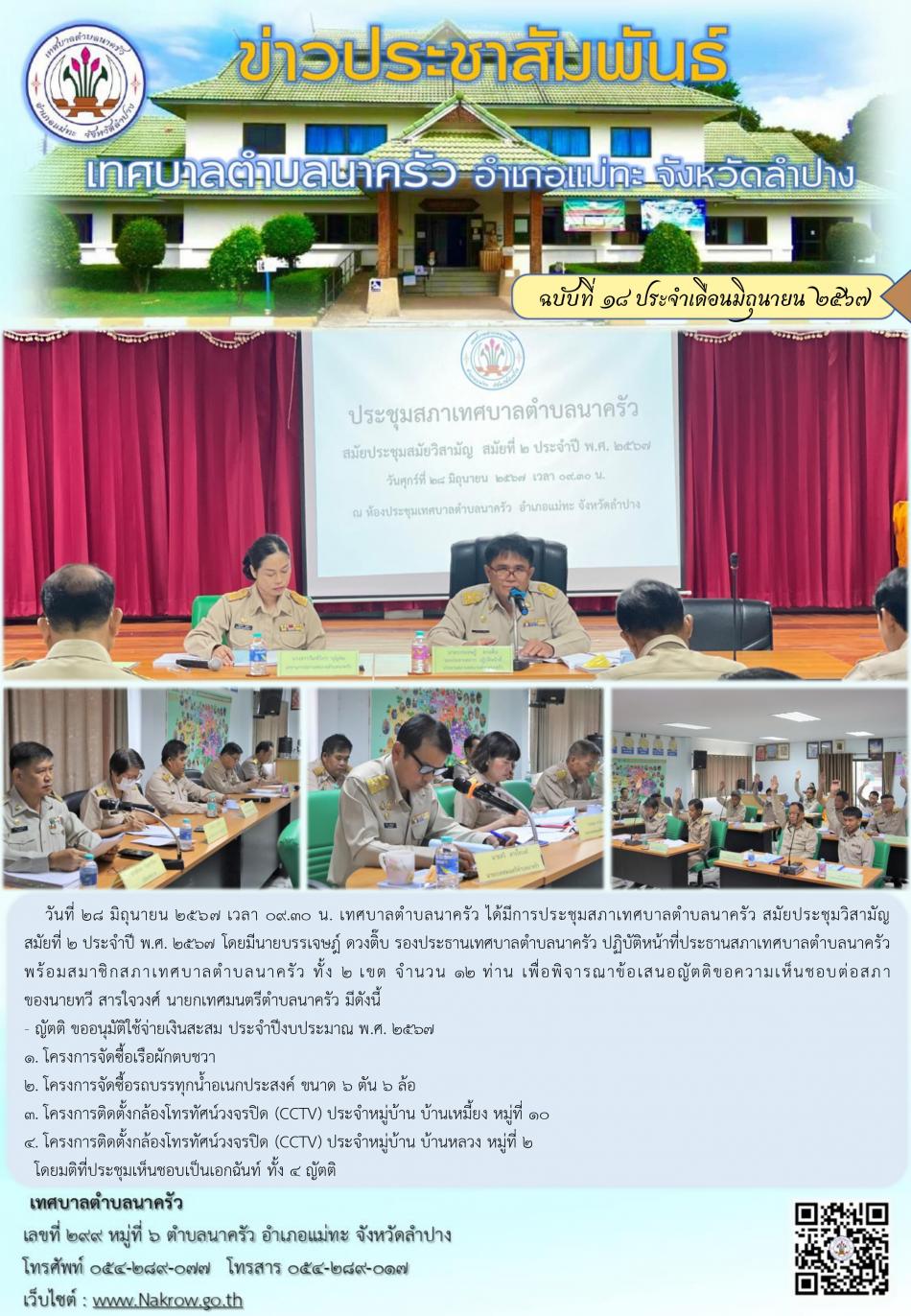 ประชุมสภาเทศบาลตำบลนาครัว สมัยประชุมวิสามัญ สมัยที่ 2 ประจำปี พ.ศ. 2567 [28 มิถุนายน 2567]