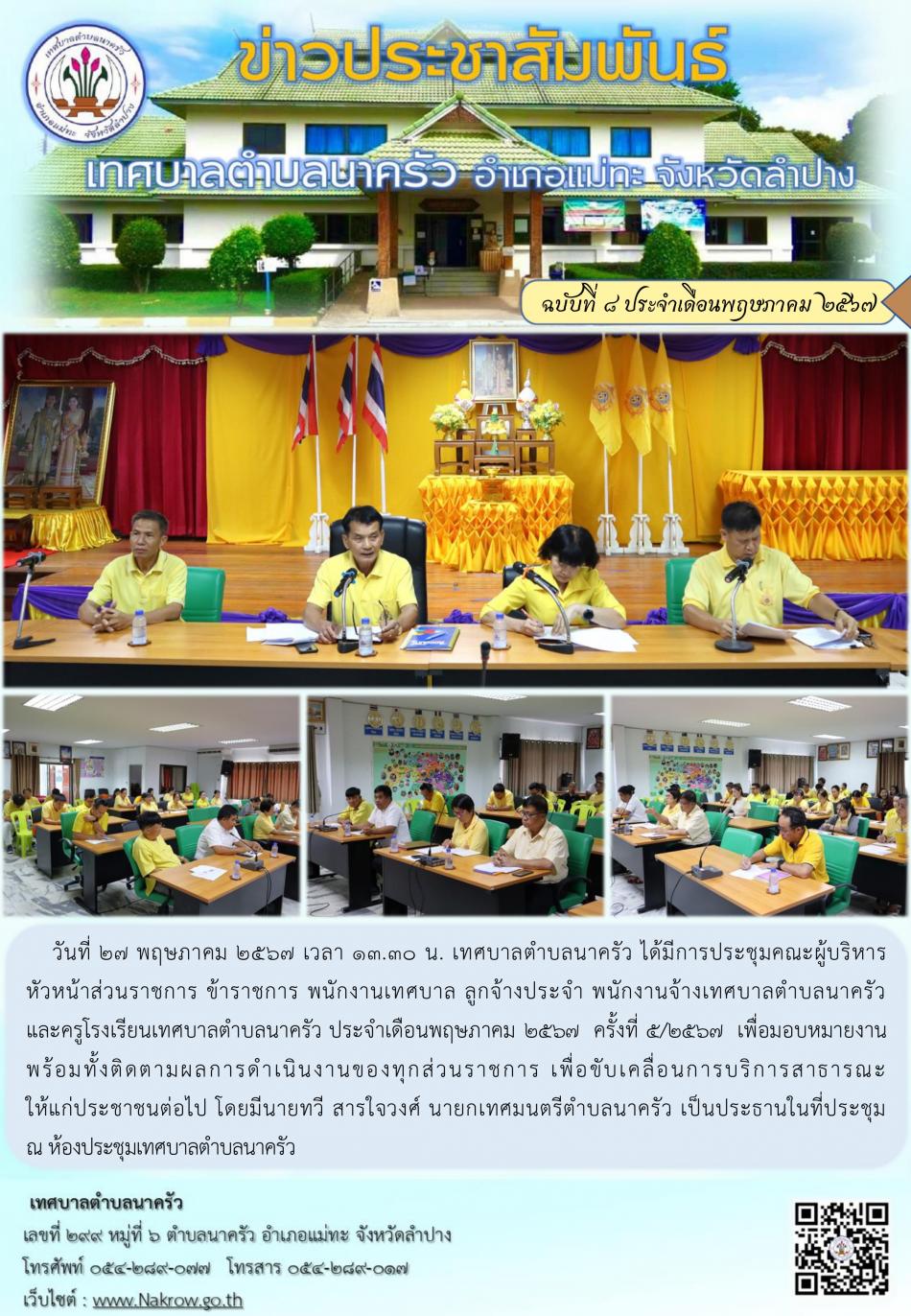 ประชุมพนักงานจ้างเทศบาลตำบลนาครัว ประจำเดือนพฤษภาคม 2567 ครั้งที่ 5/2567 [27 พฤษภาคม 2567]