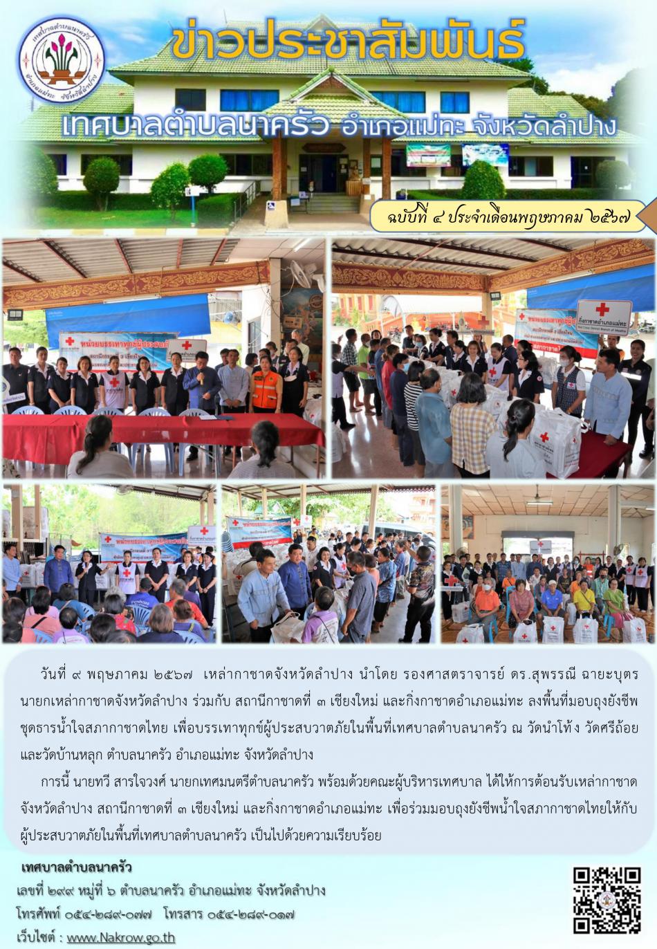 มอบถุงยังชีพชุดธารน้ำใจสภากาชาดไทย เพื่อบรรเทาทุกข์ผู้ประสบวาตภัยในพื้นที่เทศบาลตำบลนาครัว [9 พฤษภาคม 2567]