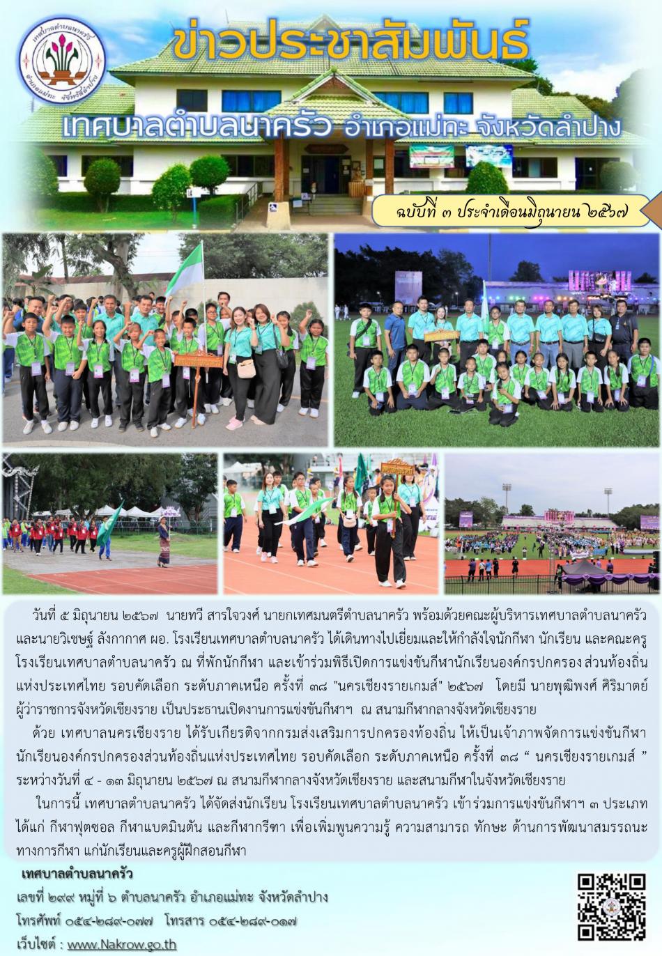 เทศบาลตำบลนาครัวร่วมพิธีเปิดการแข่งขันกีฬานักเรียนองค์กรปกครองส่วนท้องถิ่นแห่งประเทศไทย รอบคัดเลือก ระดับภาคเหนือ ครั้งที่ 38 "นครเชียงรายเกมส์" 2567 [7 มิถุนายน 2567]