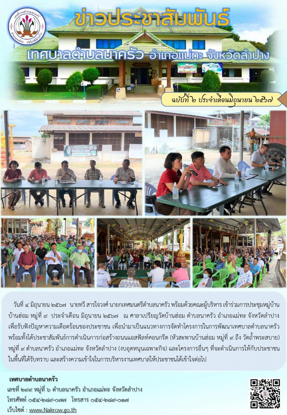 คณะผู้บริหารเทศบาลตำบลนาครัว เข้าร่วมการประชุมหมู่บ้าน บ้านฮ่อม หมู่ที่ 9 ประจำเดือน มิถุนายน 2567 ณ ศาลาเปรียญวัดบ้านฮ่อม [4 มิถุนายน 2567]