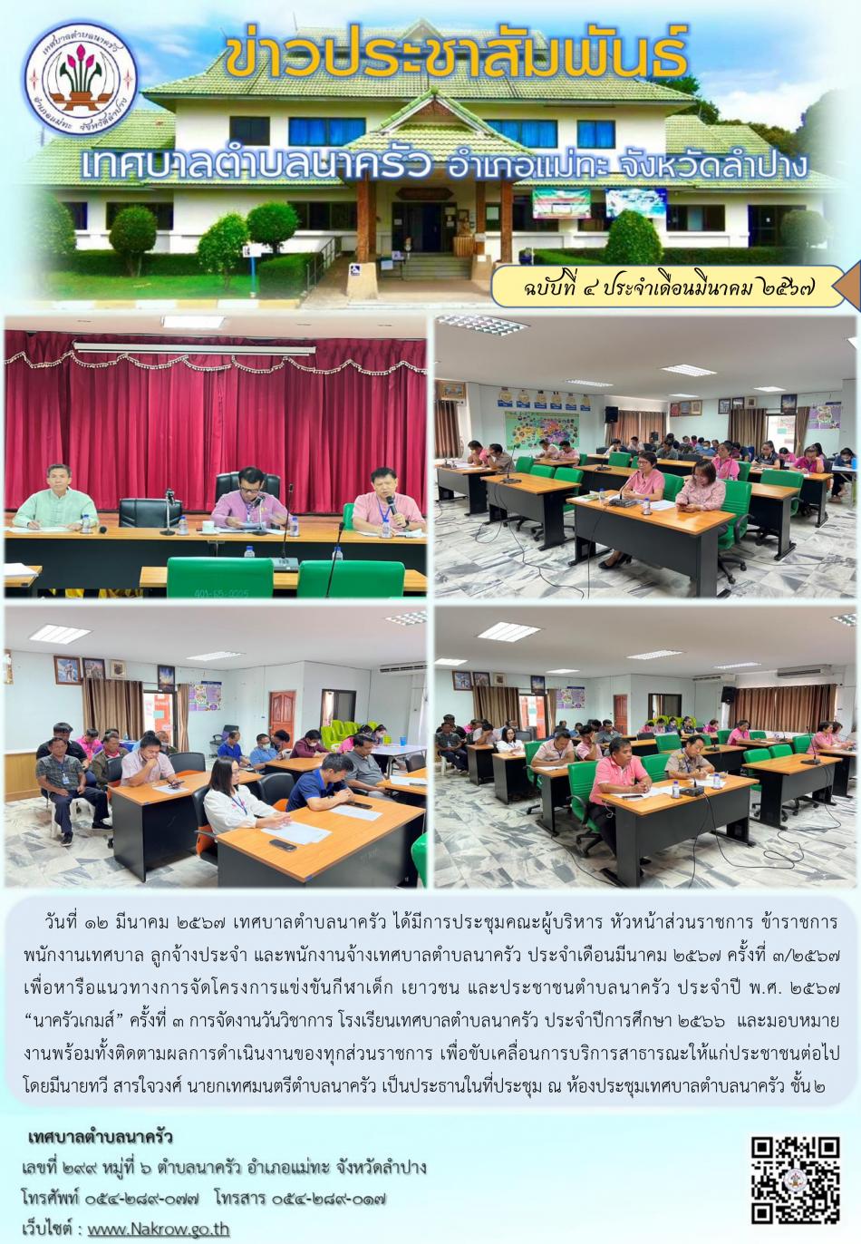 ประชุมพนักงานเทศบาลตำบลนาครัว ประจำเดือนมีนาคม 2567 [12 มีนาคม 2567]