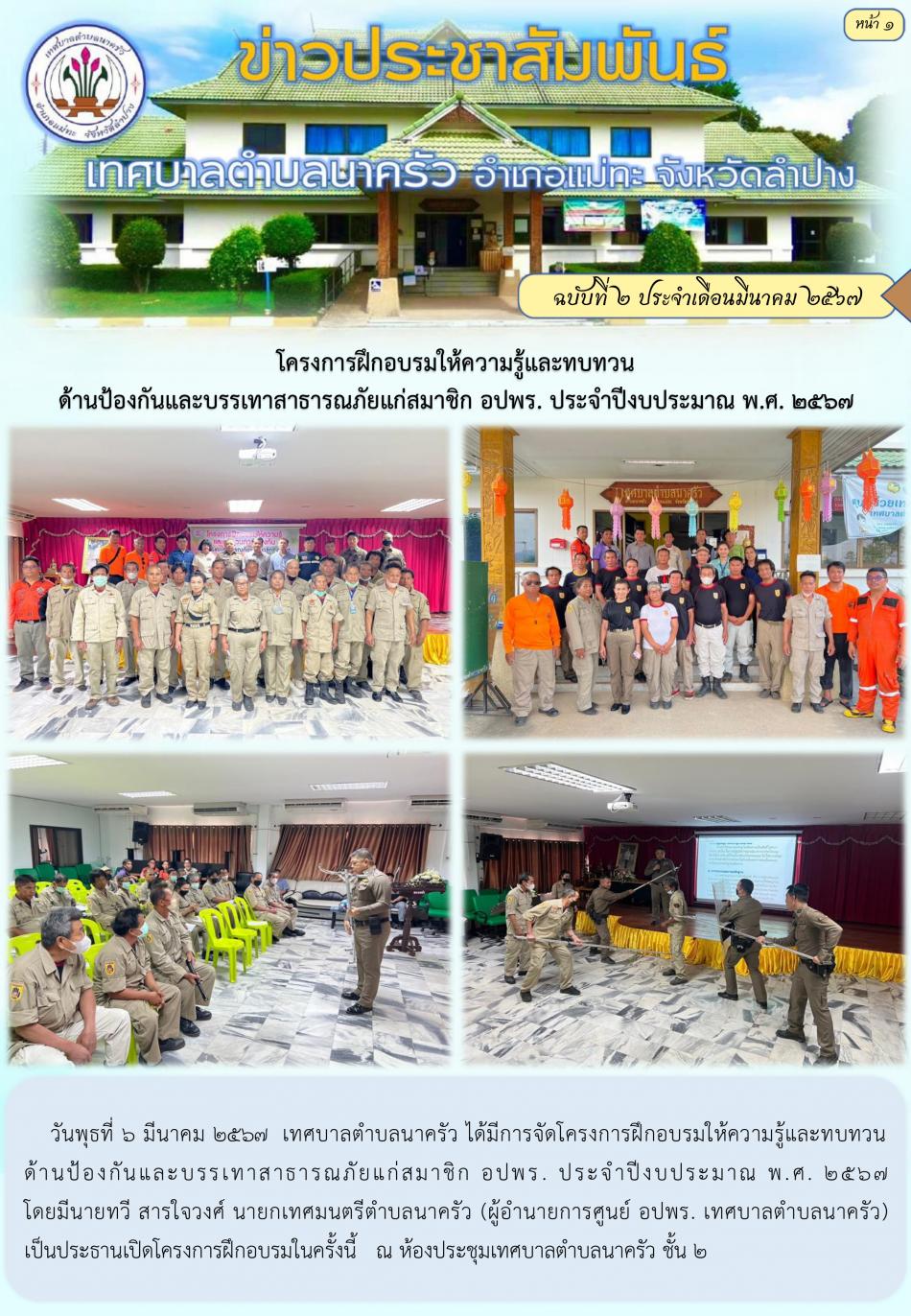 โครงการฝึกอบรมให้ความรู้และทบทวนด้านป้องกันและบรรเทาสาธารณภัยแก่สมาชิก อปพร. ประจำปีงบประมาณ พ.ศ. 2567 [7 มีนาคม 2567]