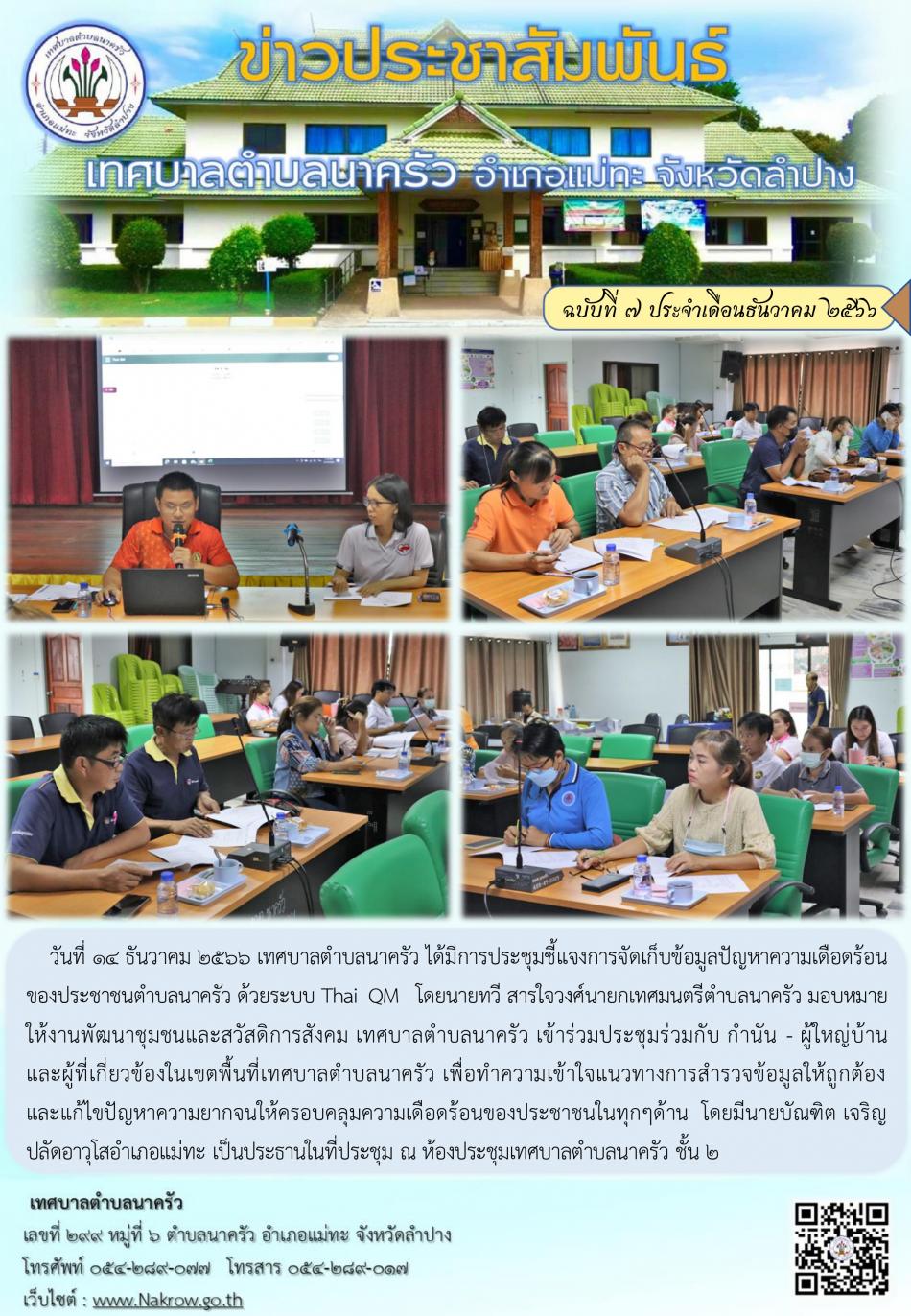 ประชุมชี้แจงการจัดเก็บข้อมูลปัญหาความเดือดร้อนของประชาชนตำบลนาครัว ด้วยระบบ Thai QM [14 ธันวาคม 2566]